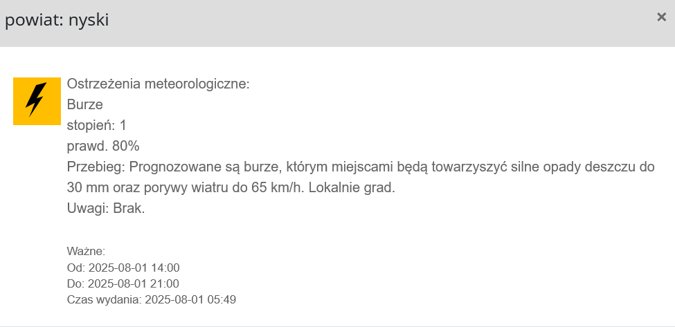 Warto się odpowiednio wcześniej przygotować, bowiem synoptycy wydali ostrzeżenie pogodowe dla naszego regionu. Tym razem komunikat dotyczy możliwości wystąpienia burz 1. stopnia.