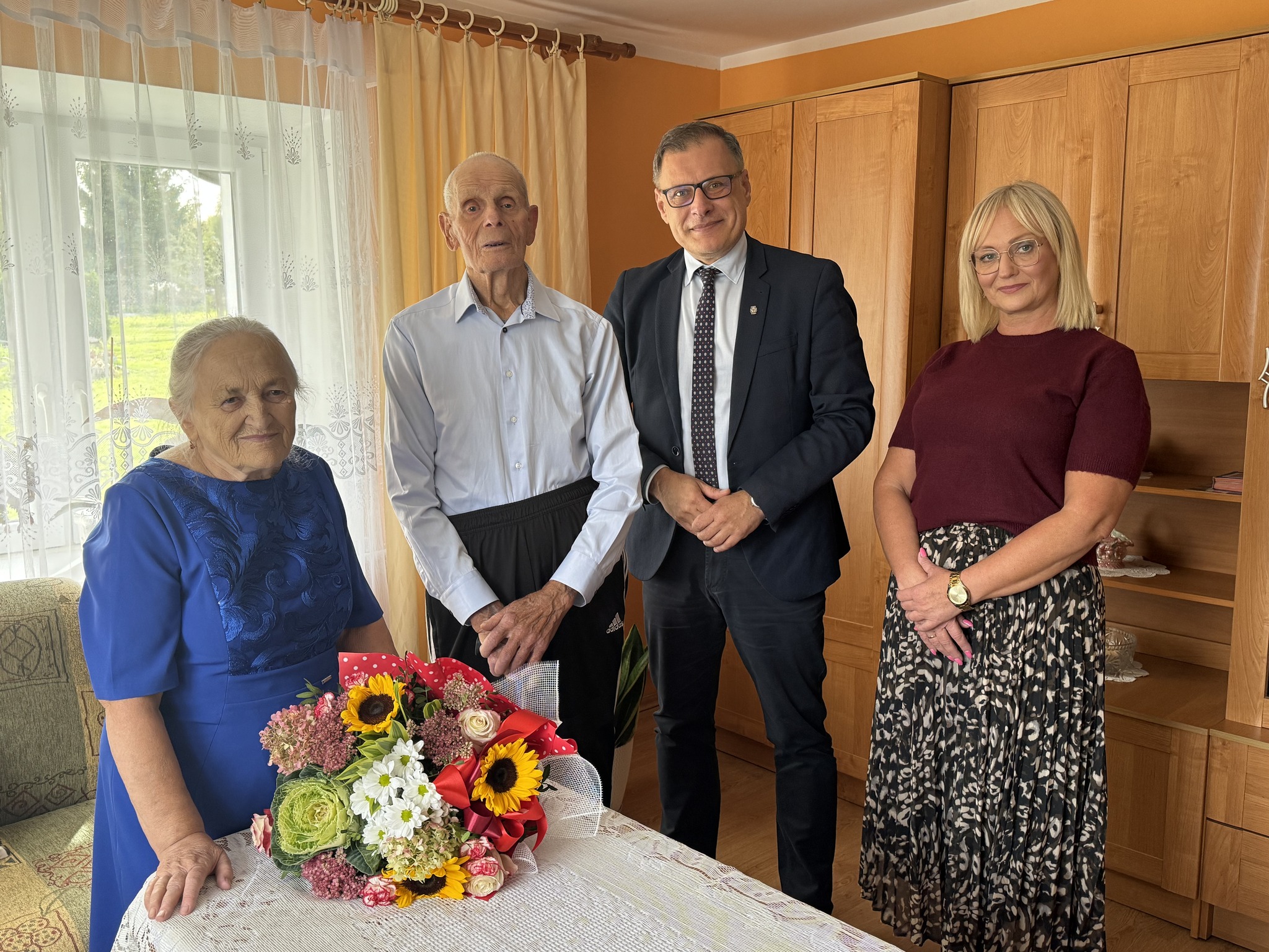 U innych Dostojnych Jubilatów, którzy świętowali swoje Złote Gody w domowym zaciszu 8 października 2025 roku, z gratulacjami i upominkami odwiedzili przedstawiciele Urzędu Stanu Cywilnego wraz z Burmistrzem Nysy.