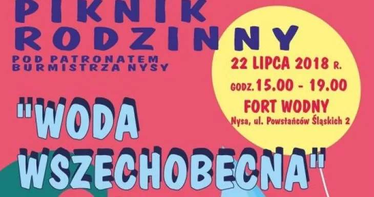 W niedzielę 22 lipca w Forcie Wodnym w Parku Miejskim będzie miał miejsce Piknik Rodzinny “Woda Wszechobecna”. Zaplanowano szereg atrakcji związanych z wodą, animacje, konkursy, degustację wody, gry terenowe i dużo niespodzianek dla dzieci.Początek o godzinie 15. -