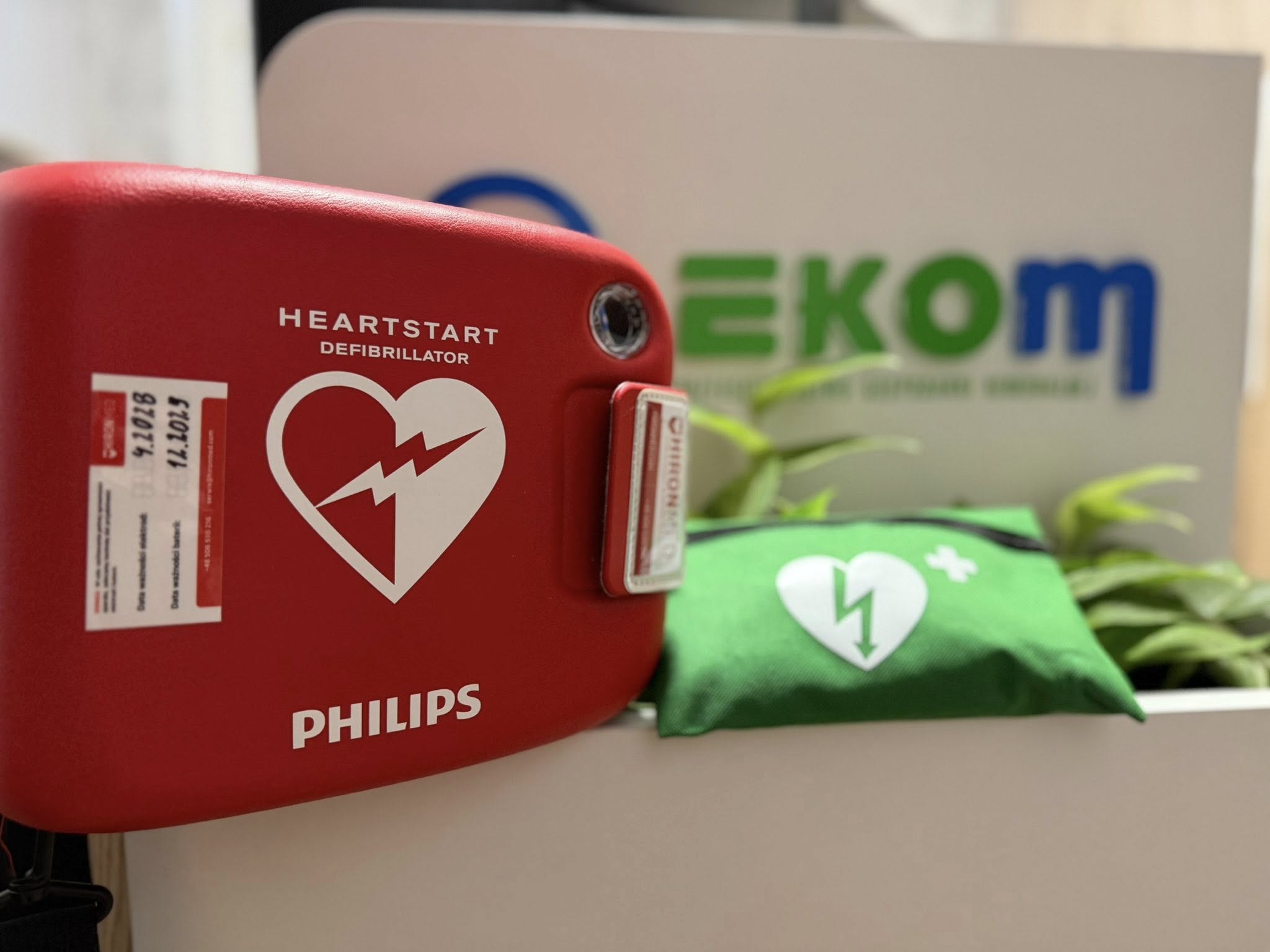 W sytuacji zagrożenia zdrowia i życia liczy się każda sekunda. W siedzibie spółki Ekom pojawił się defibrylator czyli urządzenie medyczne ratujące życie, które przywraca prawidłowy rytm serca poprzez dostarczenie kontrolowanego impulsu elektrycznego w nagłych przypadkach zatrzymania krążenia, eliminując chaotyczne skurcze serca, jak migotanie komór.