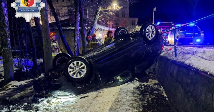 W dniu 23 grudnia, tuż po północy do PSP wpłynęło zgłoszenie dotyczące dachowania auta w Głuchołazach. Zdarzenie miało miejsce przy Alei Jana Pawła II. Po dojeździe na miejsce służby zastały przewrócone auto na poboczu. Wewnątrz były dwie ranne osoby – informuje kpt. Dariusz Pryga z PSP Nysa. Poszkodowani zostali przetransportowani do Szpitala Powiatowego w Nysie. ... -