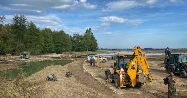 Podczas ostatniej powodzi w Nysie mieszkańcy nie tylko się martwili wypełnieniem zbiorników i stanem wody w Nysie Kłodzkiej, ale także i mniejszych ciekach wodnych. Jak się później okazało jedna z wyrw pojawiła się w Przełęku. Obecnie na miejscu pracuje ciężki sprzęt, który naprawia wał. fot. Starostwo Powiatowe w Nysie -