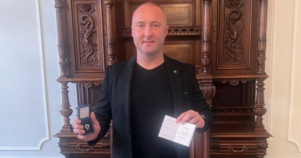 Wiktor Misiarz z odznaką „Za opiekę nad zabytkami”