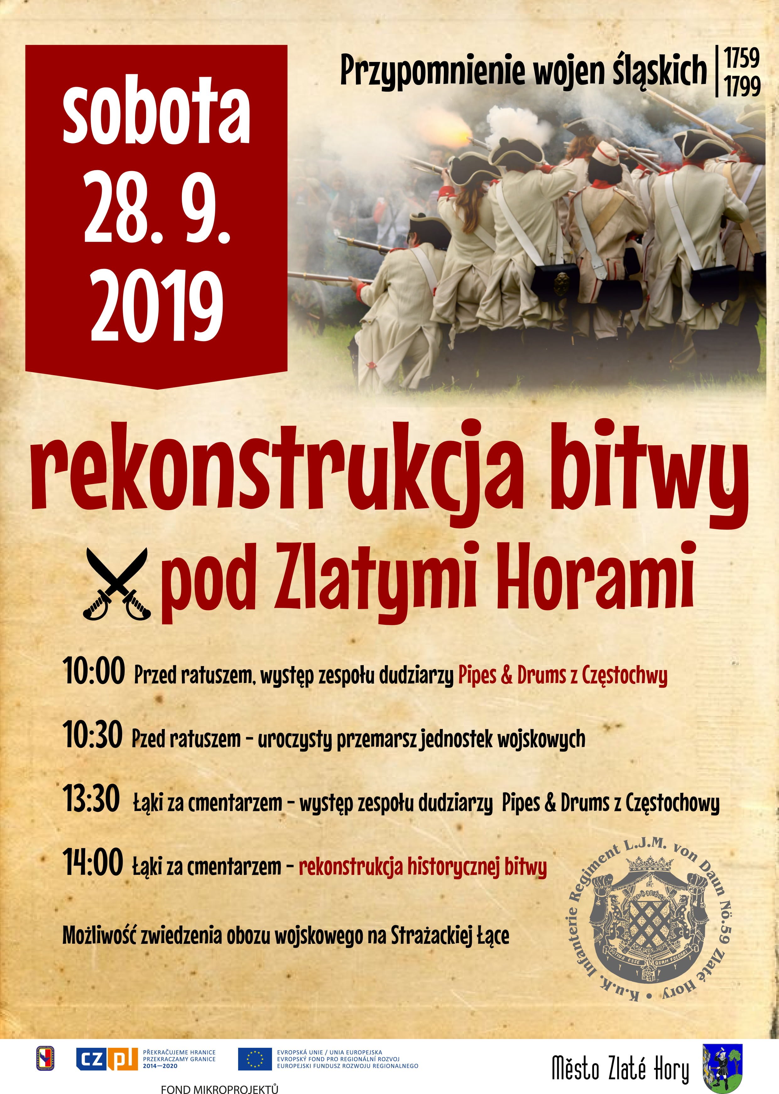 Tym razem rekonstruktorzy skupią na okresie wojen śląskich, które były prowadzone w latach 1759-1799. Wówczas to przez Śląsk przetaczały się wojska największych europejskich mocarstw. W Zlatych Horach zobaczymy między innymi przemarsz wojsk, występy zespołów muzycznych oraz zwieńczenie całego programu rekonstrukcję historycznej bitwy