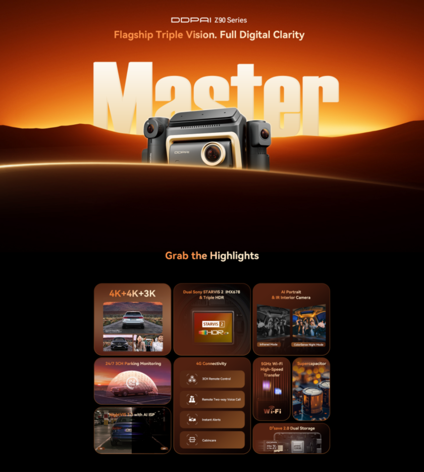 DDPAI, globalny lider w dziedzinie inteligentnej elektroniki samochodowej, ogłasza dziś premierę rejestratora jazdy Z90 Master w Polsce, wyznaczając nowy standard w zakresie nagrywania obrazu z przodu i z tyłu pojazdu dzięki podwójnym sensorom Sony STARVIS 2 IMX678 oraz zaawansowanemu nagrywaniu wewnątrz pojazdu w jakości 3K. Model Z90 Master został zaprojektowany z myślą o polskich kierowcach poruszających się w zróżnicowanych warunkach drogowych — od zatłoczonych ulic Warszawy po słabo oświetlone, górskie trasy w Karpatach. Urządzenie zapewnia niezrównaną jakość obrazu, zwiększając bezpieczeństwo i umożliwiając rejestrowanie najważniejszych momentów z podróży.