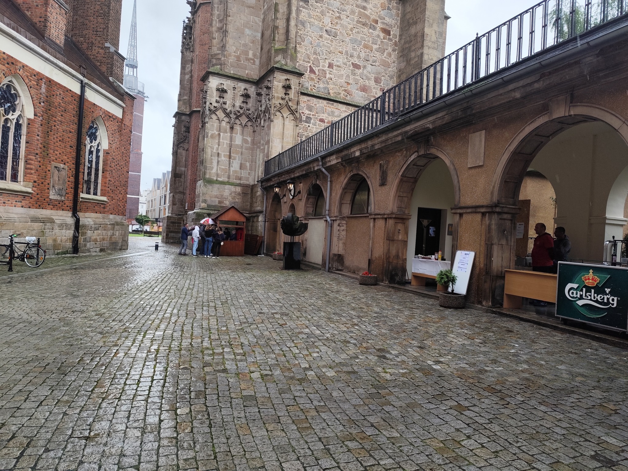 Tegoroczny Jarmark Jakubowy upłynął niestety pod znakiem ulewnego deszczu. Przed gotycką bazyliką rozstawiło się zaledwie kilka kramów, a reszta budek świeciła pustkami.