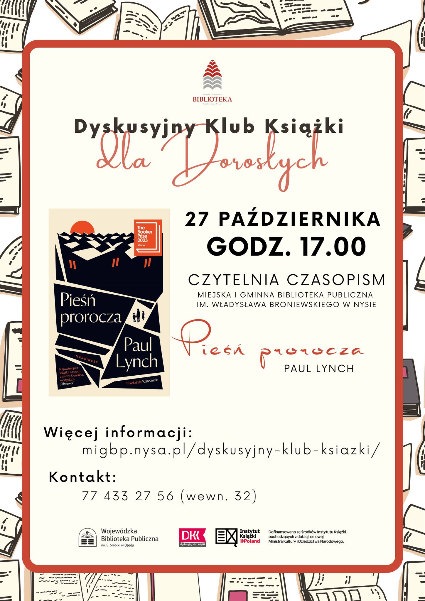 Miejska i Gminna Biblioteka Publiczna zaprasza na spotkanie Dyskusyjnego Klubu Książki dla Dorosłych, które odbędzie się 27 października (poniedziałek) o godz. 17.00 w Czytelni Czasopism.