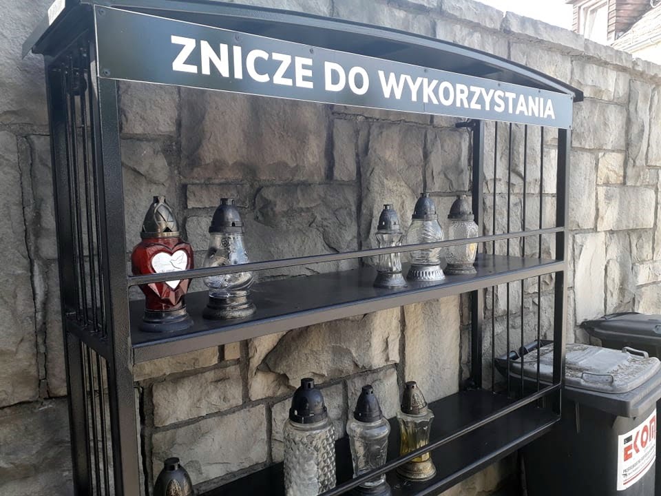 I chociaż część osób zabiera szklane oprawy do domu, to jednak większość z nich ląduje na śmietniku. Obecnie na cmentarzu komunalnym w Nysie pojawiła się alternatywa i możemy odłożyć na specjalną półkę znicz, którego już nie potrzebujemy. Inicjatorem pomysłu był Roman Jabłoński czyli Architekt Miejski. Pomysł został wcielony w życie przez EKOM.
