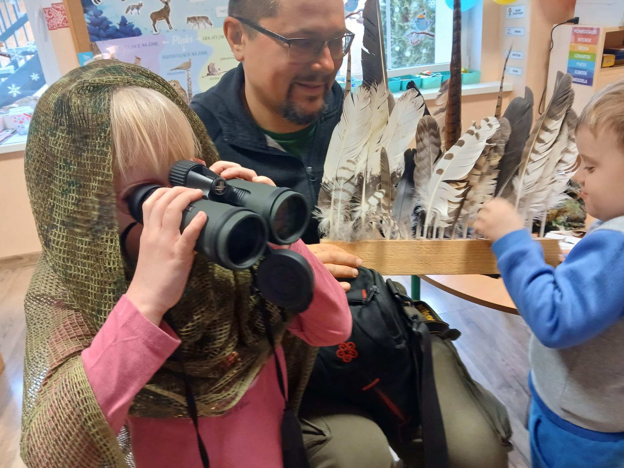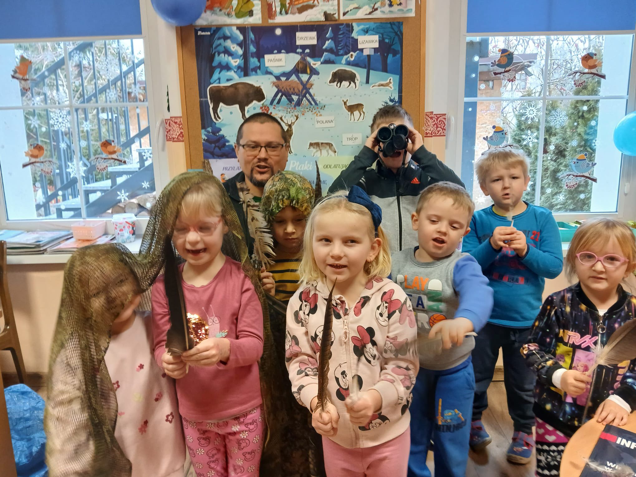 Zajęcia poświęcone były ptakom i ich roli w przyrodzie oraz zimowemu dokarmianiu. Dzięki niesamowitej energii, ciekawej formie zajęć i ogromnej wiedzy pana Jacka, przedszkolaki zdobyły nowe wiadomości, ale przede wszystkim rozbudziły ciekawość świata przyrody. To były wartościowe zajęcia szacunku do natury. Serdeczne podziękowania dla pana Jacka, za profesjonalne i niezwykle ciekawe warsztaty. Cieszymy się, że nasze dzieci mogły się uczyć od najlepszych.