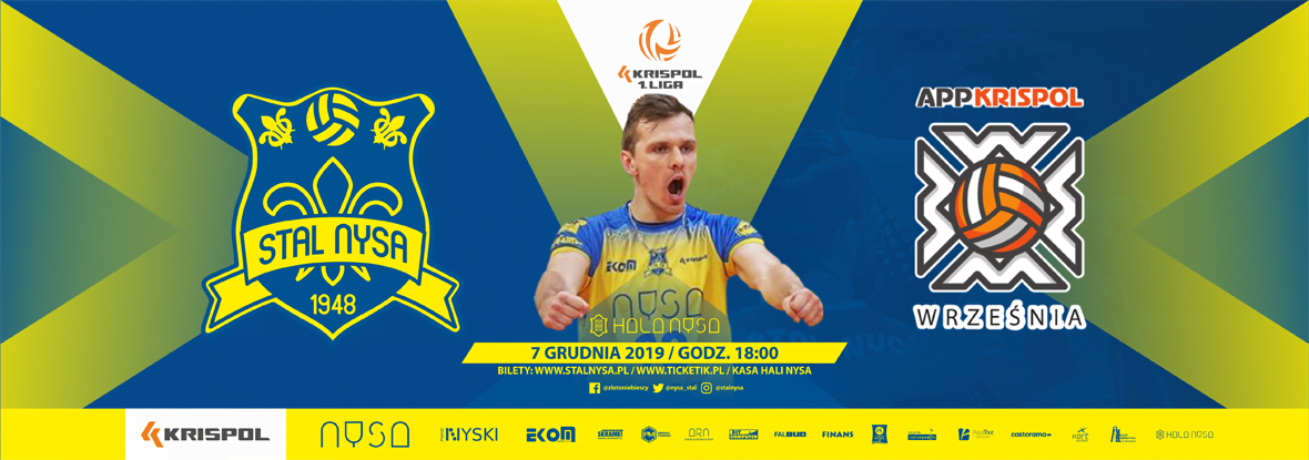 Ostatni mecz rundy jesiennej Krispol 1. Ligi Mężczyzn w HALI NYSA. STAL NYSA – lider w tabeli rozgrywek podejmować będzie drużynę APP Krispol Września. Początek spotkania 7 grudnia, w Hali Nysa o godzinie 18.