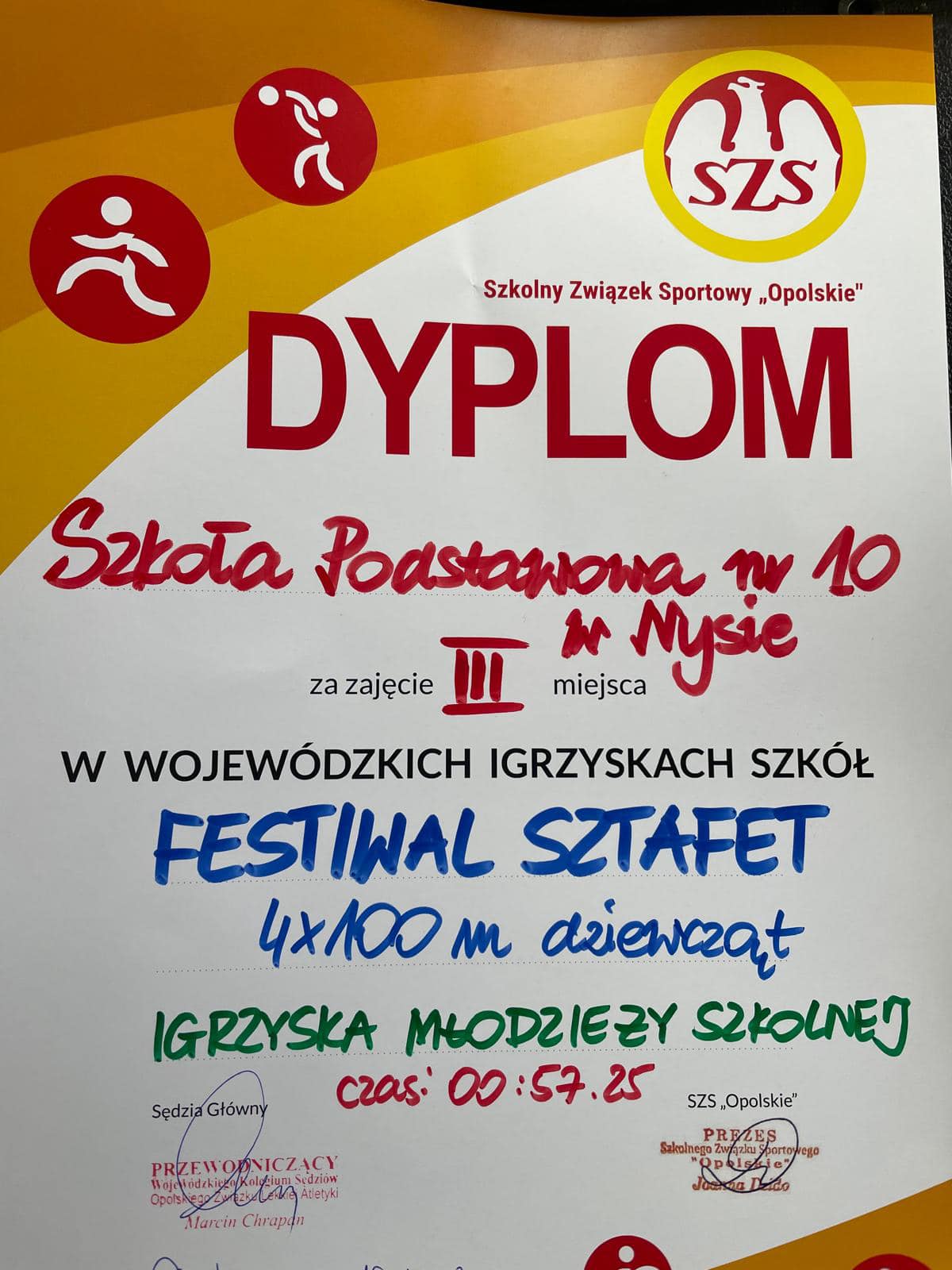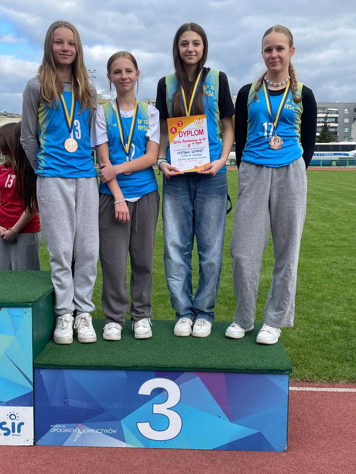 W kategorii Igrzyska Młodzieży Szkolnej w Sztafecie Olimpijskiej (bieg łączony na 100m/ 200m/ 400m/ 800m) nasze dziewczęta zajęły III miejsce.
