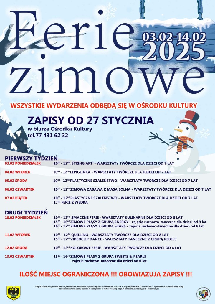 Ośrodek Kultury i Rekreacji w Paczkowie zaprasza na ferie. Zapisy ruszają od 27 stycznia. Organizatorzy przewidzieli między innymi warsztaty twórcze dla dzieci, zajęcia plastyczne czy warsztaty kulinarne.