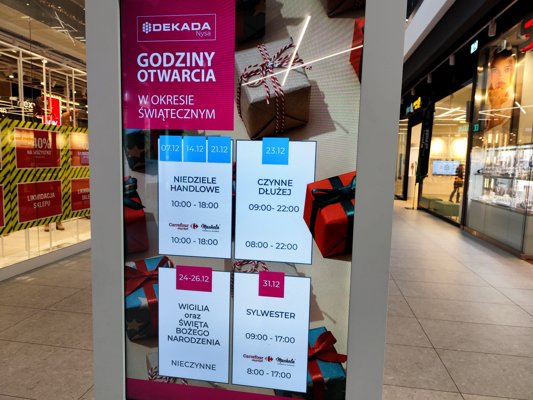 Galeria Dekada przypomina o godzinach otwarcia w okresie świątecznym.