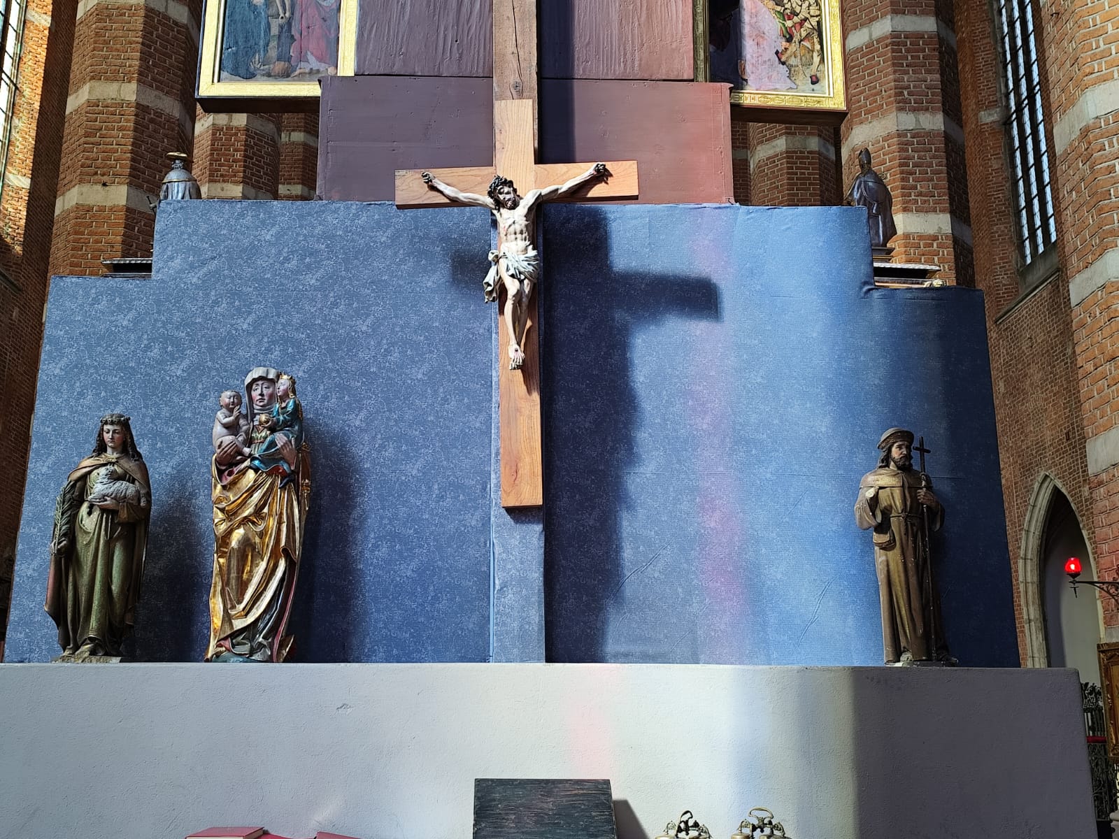 Przed II wojną światową średniowieczna rzeźba znajdowała się w jednej z bocznych kaplic. Na szczęście przetrwała ostrzał miasta i pożar w 1945 roku. Po odbudowie kościoła została umieszczona w srebrnym ołtarzu.