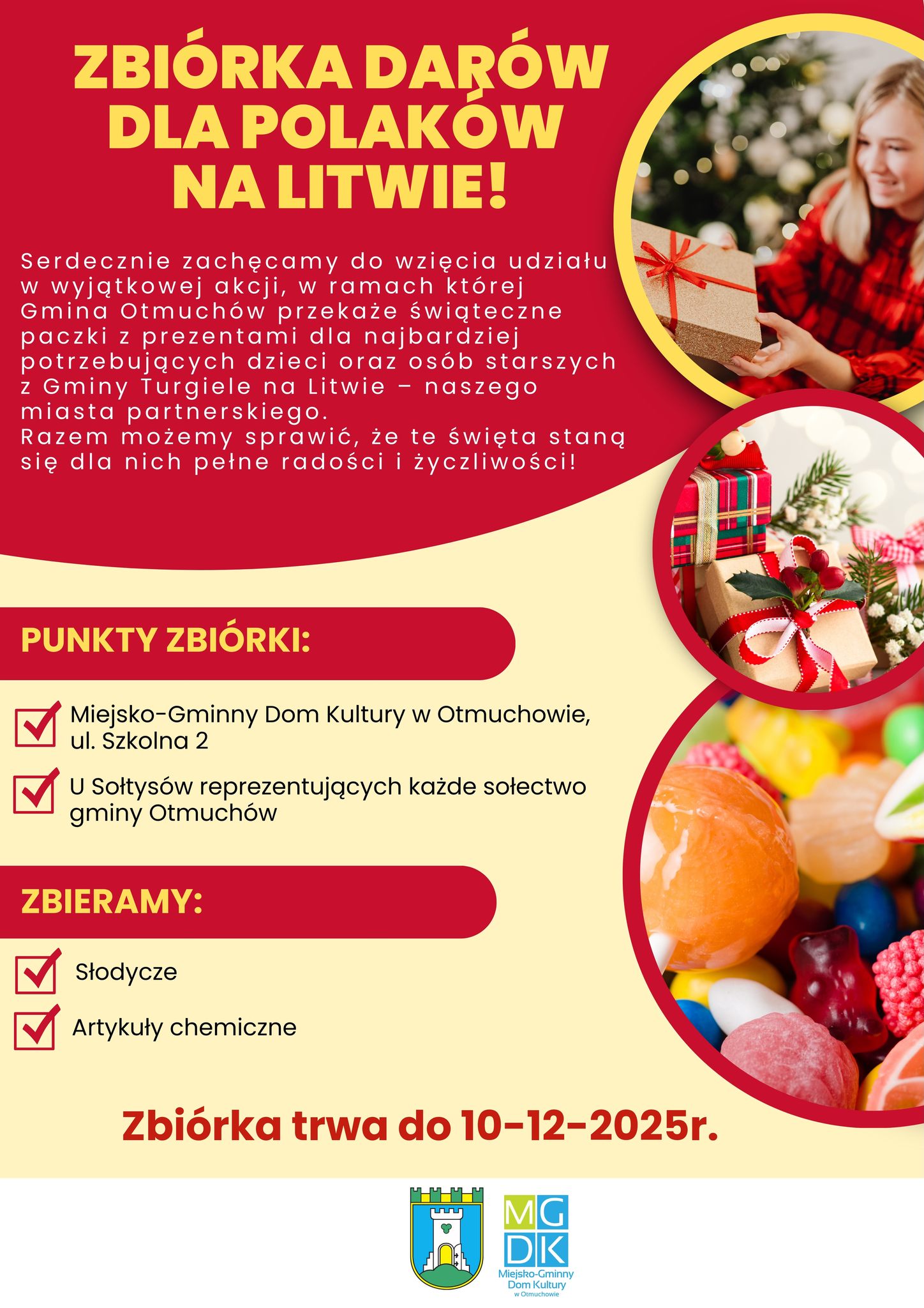 Drodzy Mieszkańcy, Z wielką przyjemnością zapraszam Państwa do włączenia się w szlachetną inicjatywę, dzięki której Gmina Otmuchów przygotuje świąteczne paczki dla najbardziej potrzebujących dzieci oraz seniorów z partnerskiej Gminy Turgiele na Litwie.