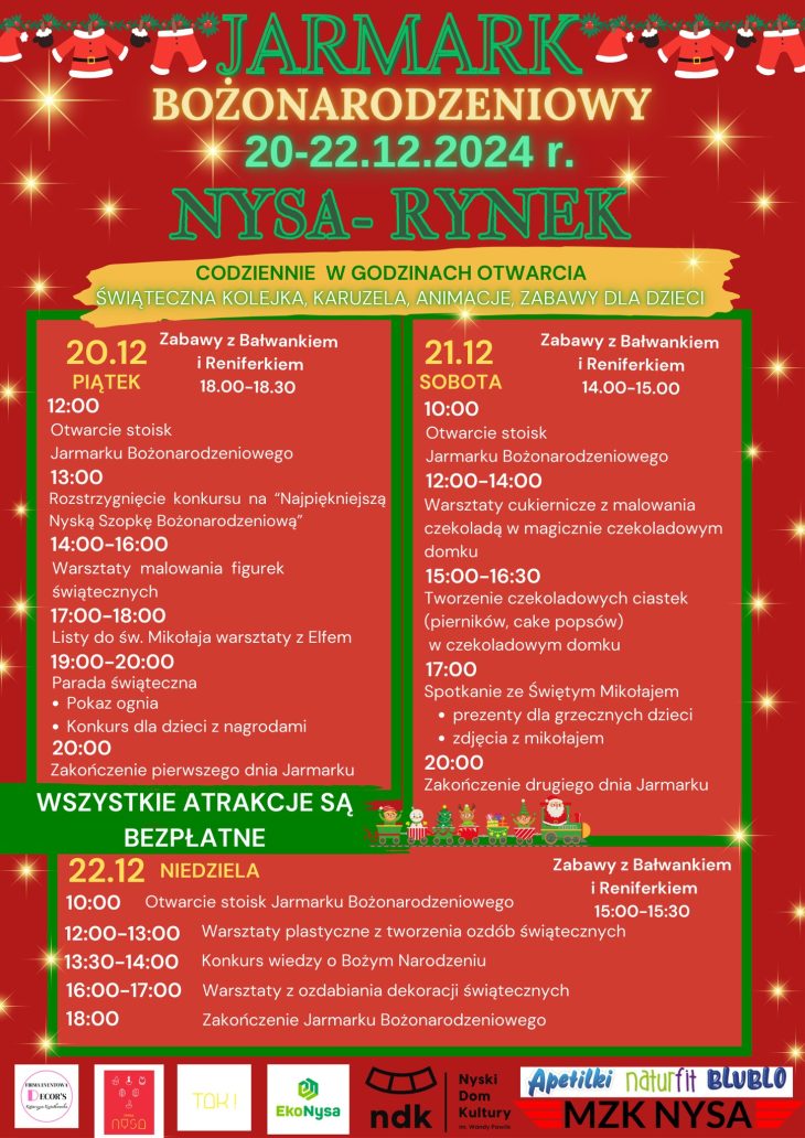 Coraz bliżej Święta! W dniach 20-22 grudnia na nyskim Rynku na odwiedzających czekać będą liczne atrakcje i warsztaty. Będzie również spotkanie z Mikołajem oraz świąteczna parada!