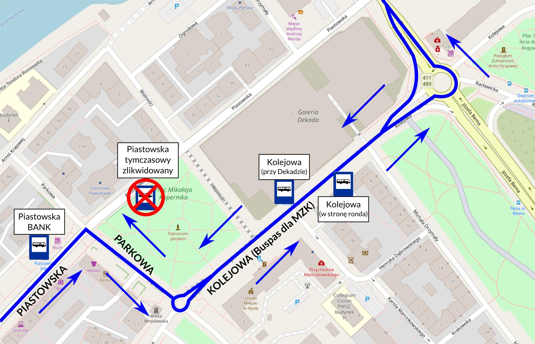 Jak informuje MZK Nysa ruch autobusowy na tym odcinku ma wrócić już w najbliższy poniedziałek. Tym samym zostanie zlikwidowany dotychczasowy przystanek MZK, który był zlokalizowany naprzeciwko Starostwa Powiatowego.
