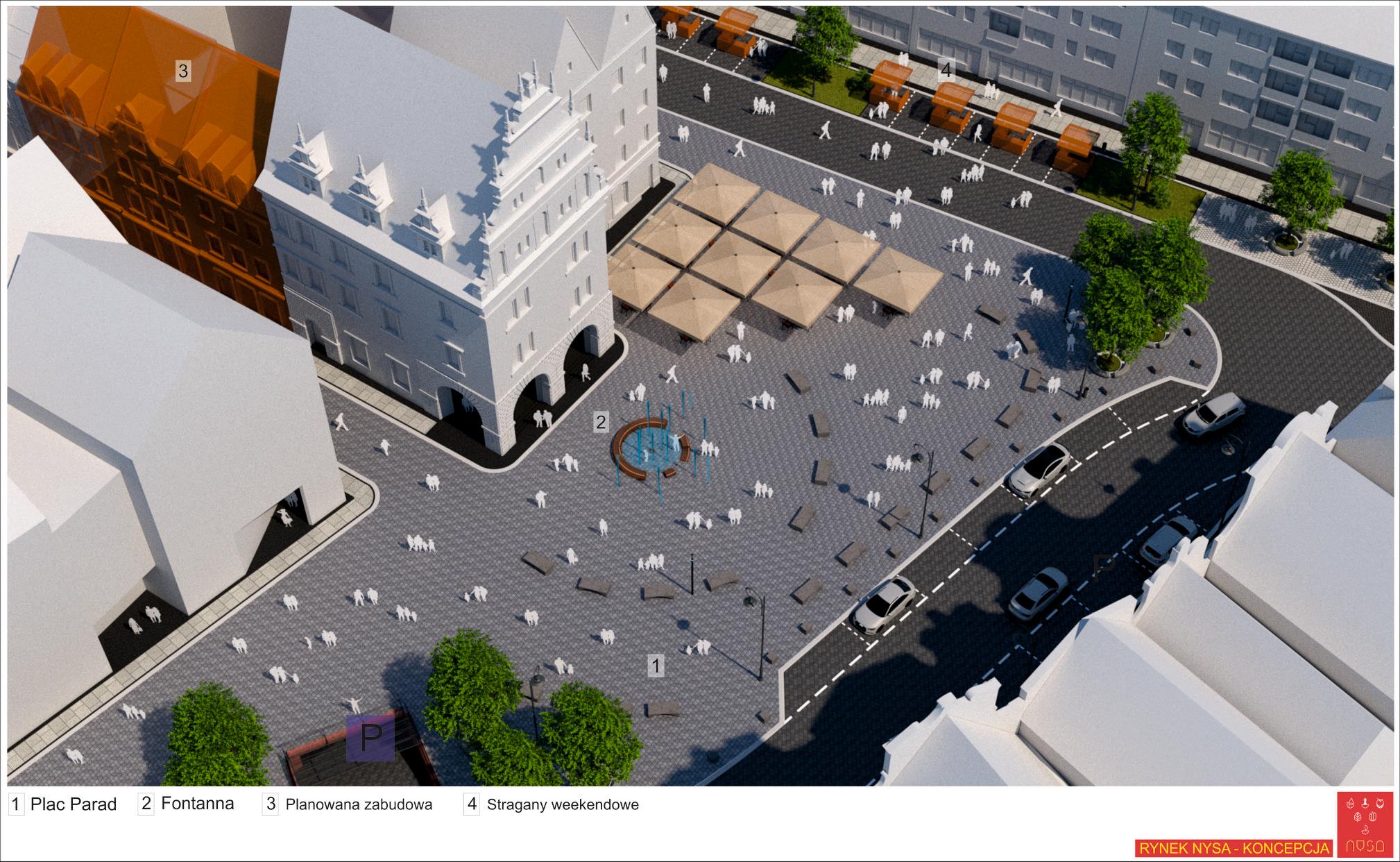 Projekt oraz pozwolenie na budowę są aktualne dla całości remontu Centrum miasta. Ze względu na możliwość pozyskania dofinansowania z różnych źródeł finansowania podzielono projekt i realizację na dwa etapy, pierwszy zakładał przebudowę ulic Kolejowej, Wrocławskiej, Rynku i Celnej w ramach projektu Budowy Centrum Przesiadkowego w Nysie i dofinansowania tzw. Niskiej emisji.