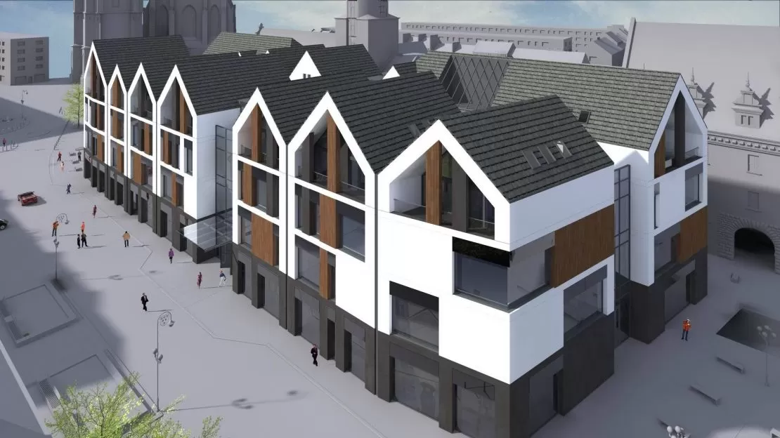 Galeria handlowa zlokalizowana w nyskim Rynku nabiera kształtów. Oszklono część okien, pojawił się dach oraz elewacja. Kiedy zatem będziemy mogli się udać na pierwsze zakupy?