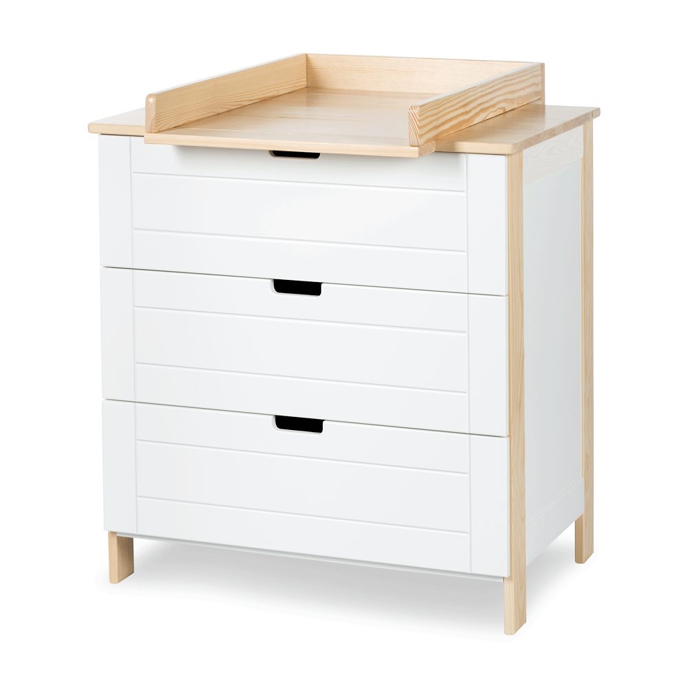 Komoda z przewijakiem to, jak sama nazwa wskazuje, wolnostojąca, pojemna szafka z szufladami, wyposażona w dodatkową nakładkę pomocną przy przewijaniu dziecka. Położywszy niemowlę na przewijaku, rodzic ma do niego lepszy dostęp i nadal może mieć je na oku. A przy tym pod ręką ma wszystko, co potrzebne do sprawnego przeprowadzenia zabiegów higienicznych i pielęgnacyjnych. W szufladach zmieszczą się pieluszki, śpioszki na zmianę i zapas niezbędnych kosmetyków, przewijak zaś znajduje się na idealnej wysokości – rodzic nie musi wspinać się na palce ani niekomfortowo nachylać.