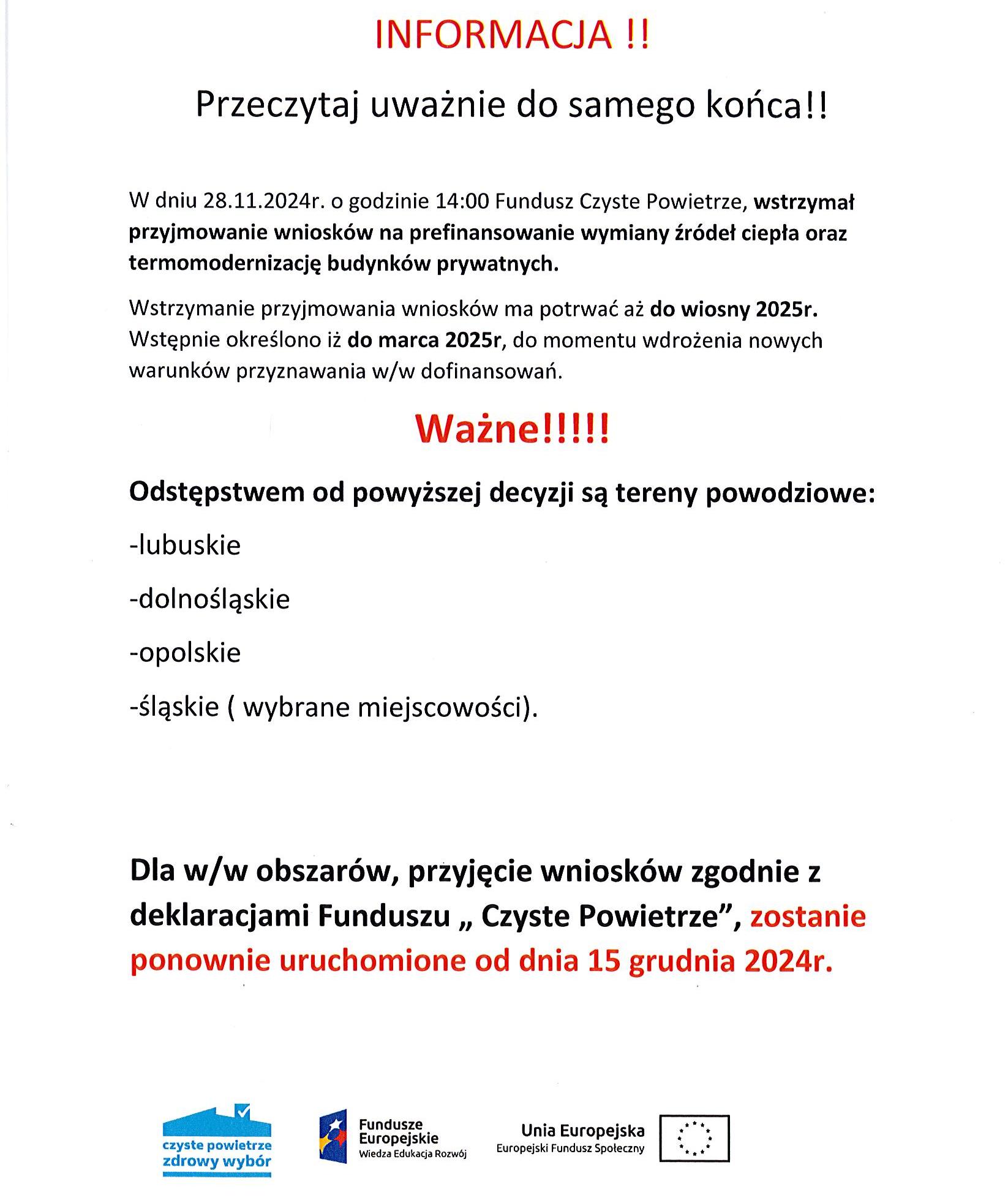 Wstrzymanie potrwa do wiosny 2025 r. (wstępnie do marca 2025 r.), kiedy zostaną wdrożone nowe warunki przyznawania dofinansowań.