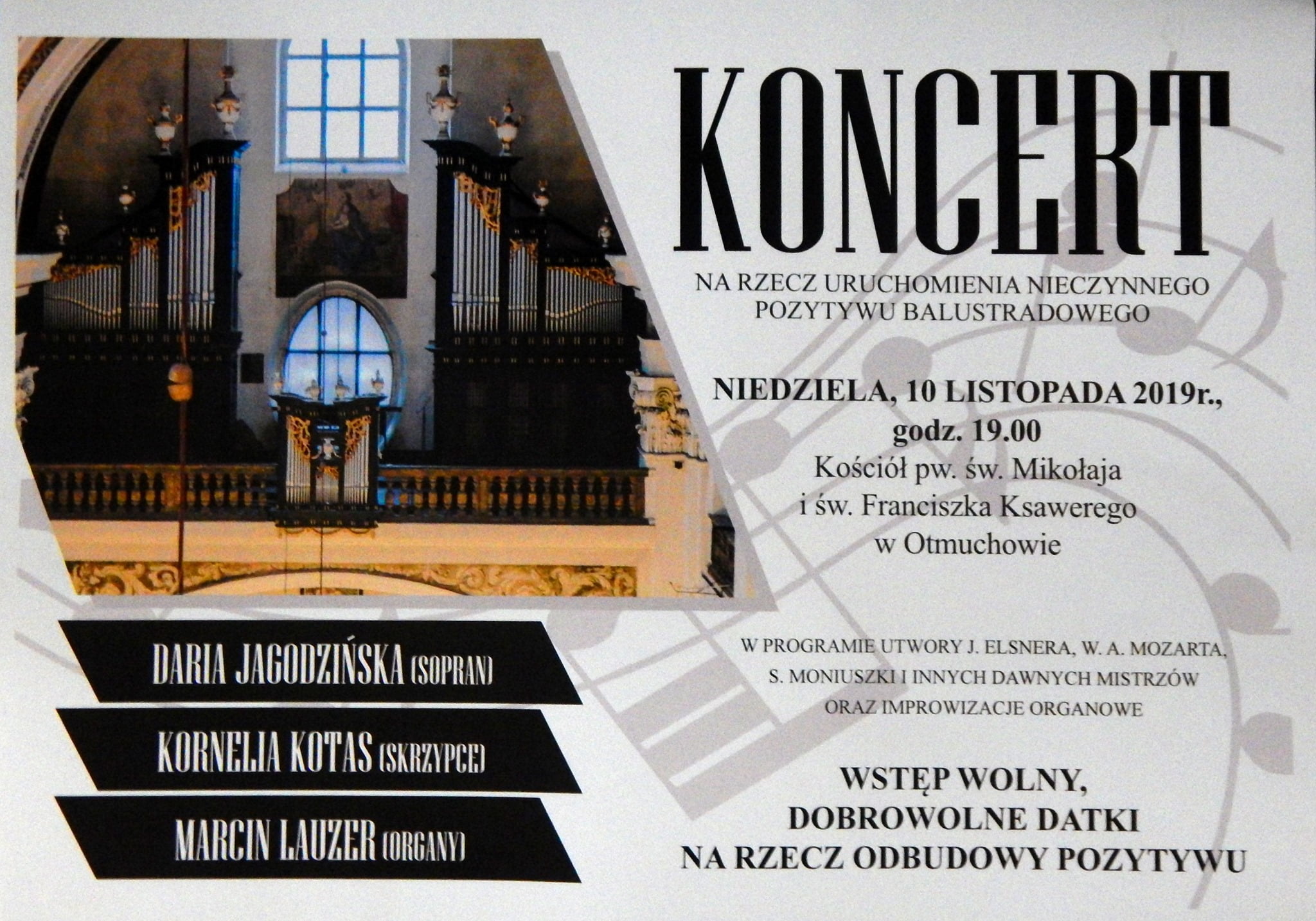 Goście będą mieli świetną szansę, aby w historycznych wnętrzach poobcować z muzyką klasyczną. Oprócz samych organów w koncercie usłyszmy także dźwięki skrzypiec o wokalistów.