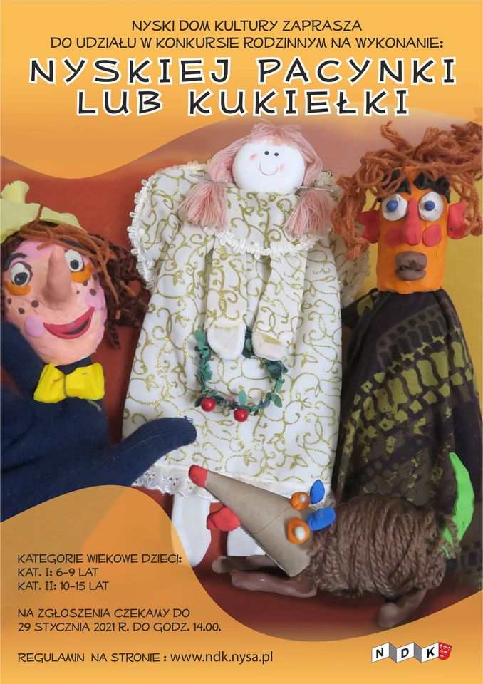 Co można robić podczas długich jesiennych i zimowych wieczorów? Możliwości z pewnością jest sporo, jednak dobrą okazją do rodzinnego spędzenia czasu będzie udział w konkursie rodzinnym na wykonanie Nyskiej pacynki lub kukiełki.