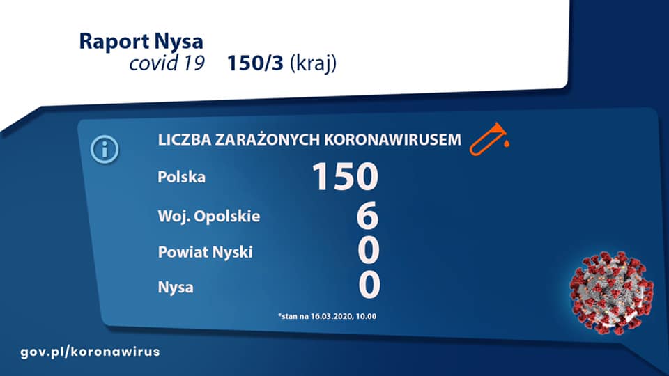 W sumie liczba osób zakażonych koronawirusem w Polsce to 150 (w tym trzy przypadki śmiertelne)