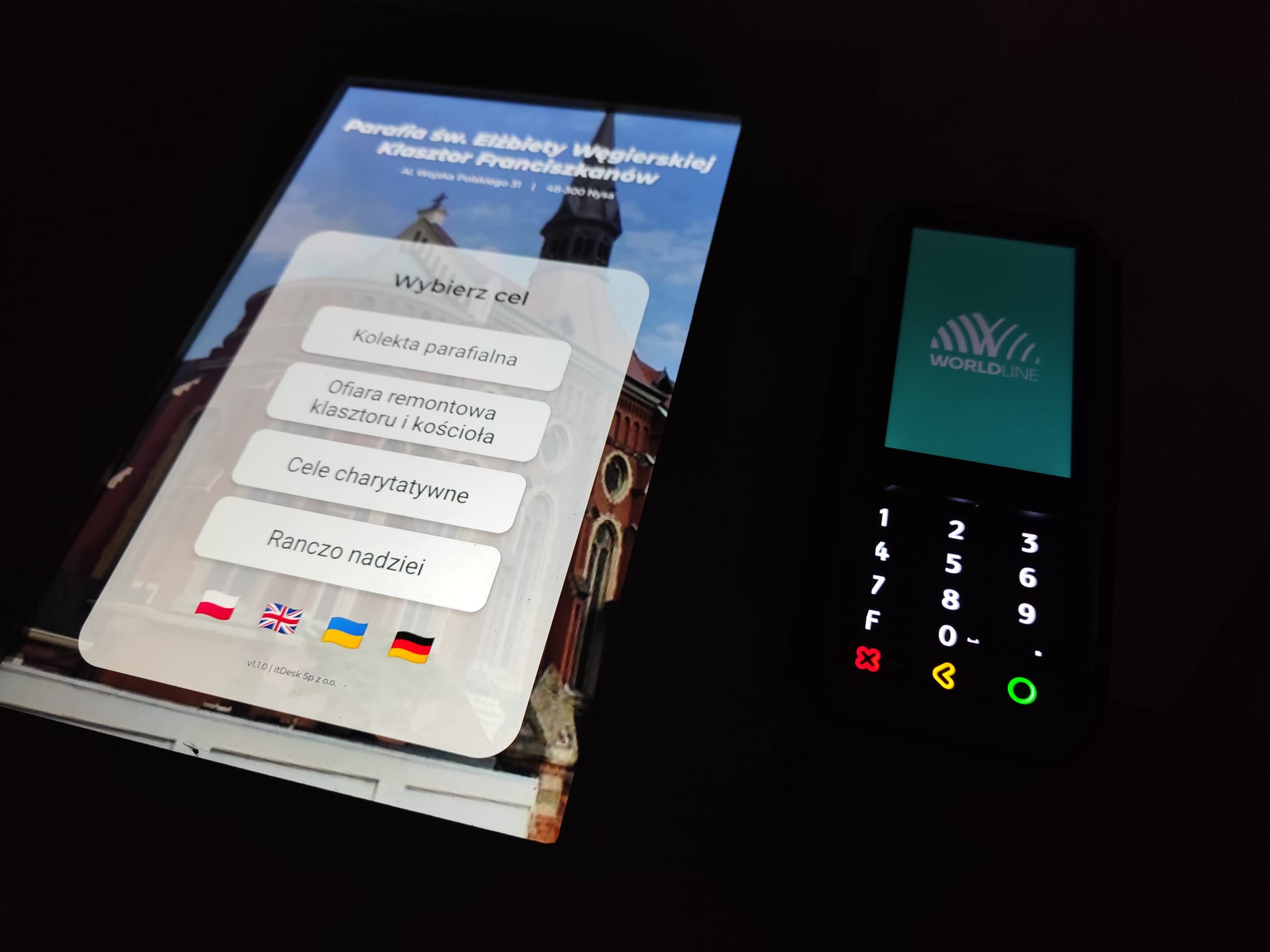 W coraz większej liczbie świątyń pojawiają się specjalne terminale, przy których można złożyć ofiarę w nowoczesnej, bezgotówkowej formie. Za pomocą terminala ofiarę można złożyć także w kościele św. Jakuba i Agnieszki.