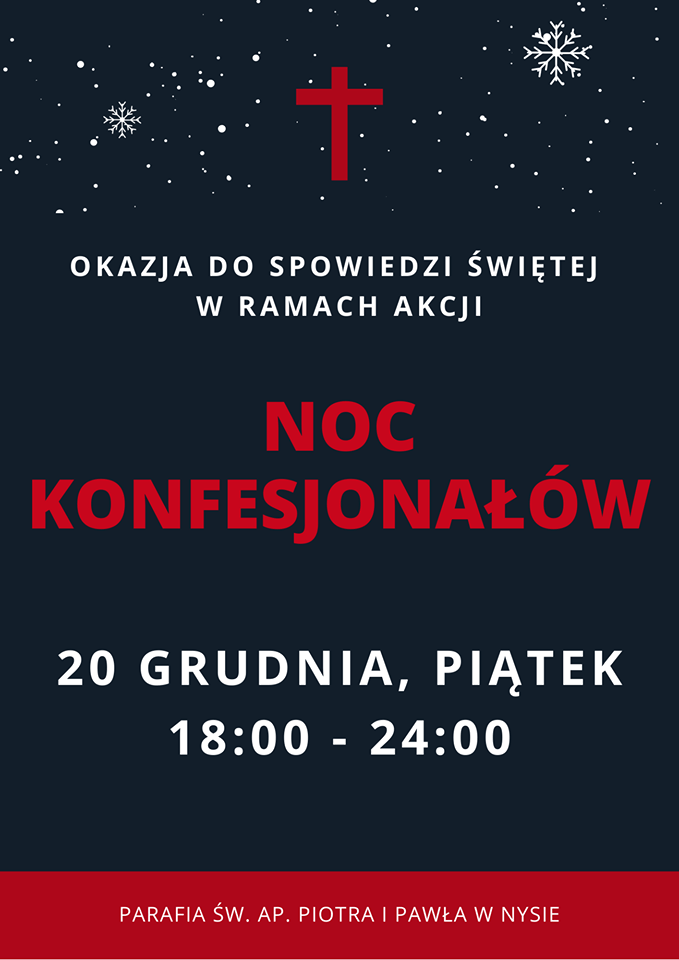 Ta wyjątkowa formuła spowiedzi doskonale sprawdza się przy okazji Świąt Wielkanocnych, kiedy to wieczorami, w kolejkach do konfesjonałów ustawiają się długie kolejki. Tym razem z sakramentu będzie można skorzystać już 20 grudnia, w godzinach od 18 do 24.