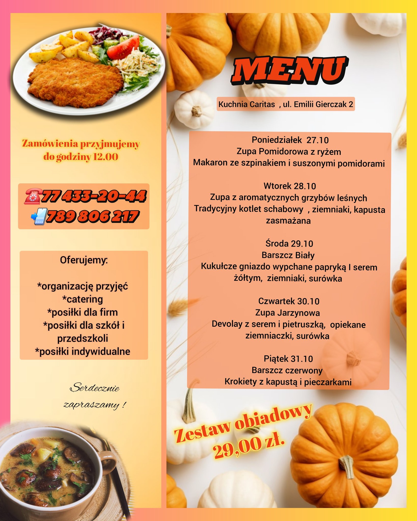 Kuchnia Caritas – co znajdziemy w menu na ten tydzień? Każdy dzień oczywiście zapowiada się smakowicie.