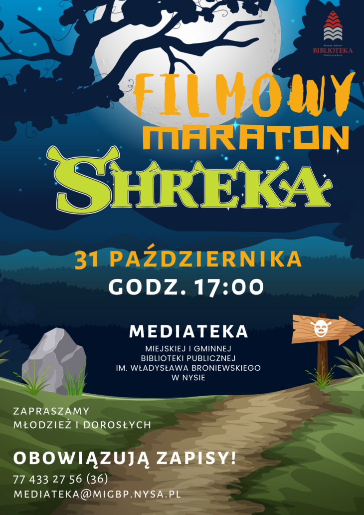Dobra wiadomość dla fanów filmowego zielonego ogra. Już w czwartek 31 października 2024 r. w Mediatece (3. piętro Miejskiej i Gminnej Biblioteki Publicznej w Nysie) odbędzie się maraton filmowy ze Shrekiem.