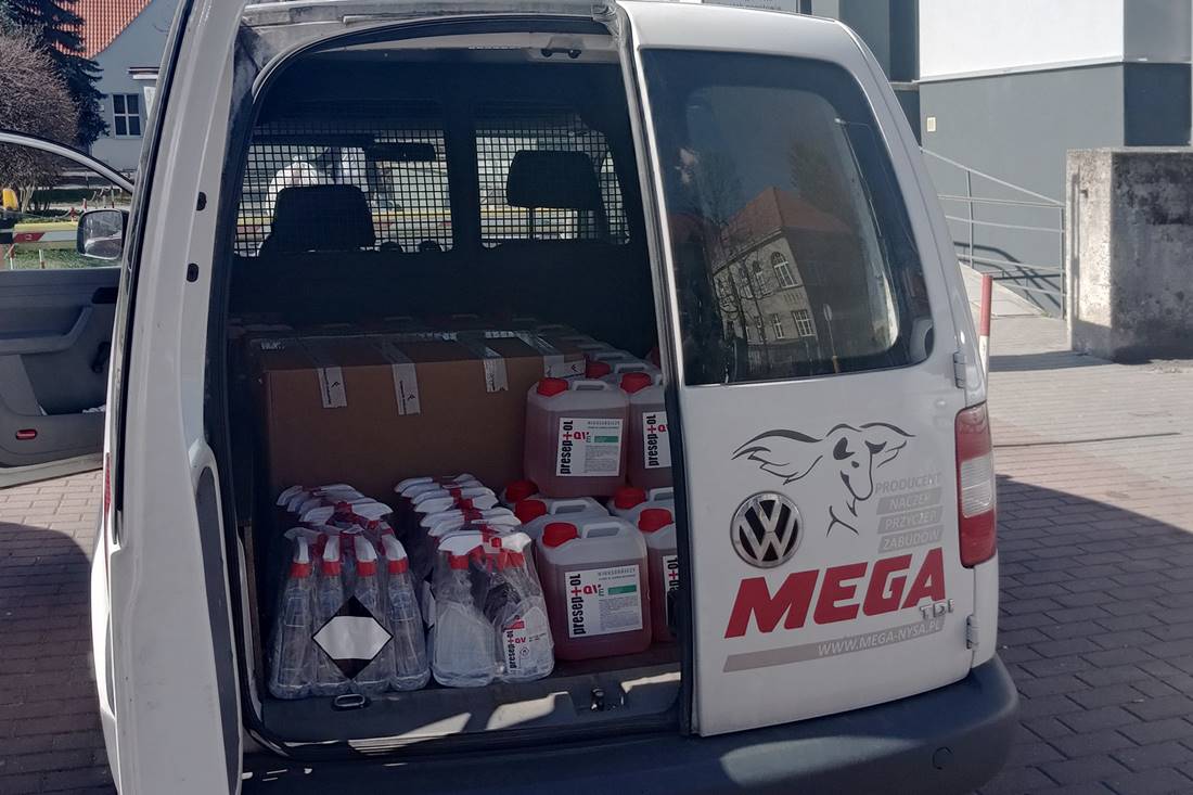 MEGA zamówiła również dodatkowe płyny dezynfekujące, aby pracownicy mieli możliwość pobrać przewidzianą dla każdego ilość do domów.