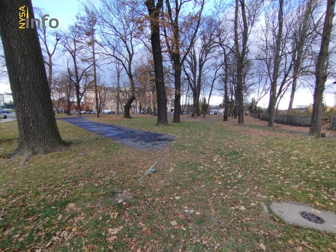 Na przeciwko Przychodni Kolejowej w Nysie znajduje się ciekawy teren zielony. Z jednej strony mamy widok na budynek przychodni, mocno zdewastowaną wieżę ciśnień, a następnie wyremontowane Centrum Przesiadkowe. Z drugiej strony na placu nie ma ławek, oświetlenia, a cały teren jest mocno zaniedbany.