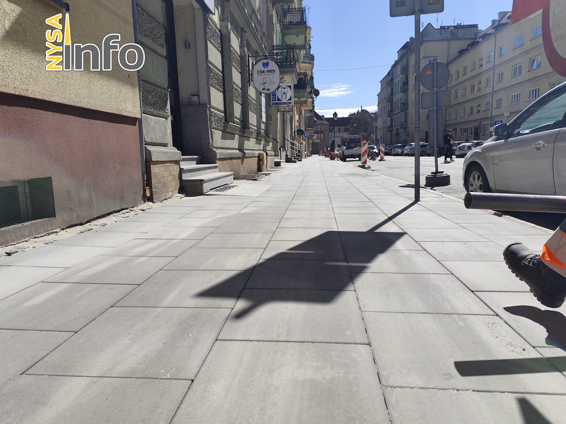 Przez ostatnich kilkanaście dni przy ulicy Zjednoczenia w Nysie trwały intensywne prace. Ekipa budowlana usuwała stare płyty chodnikowe.
