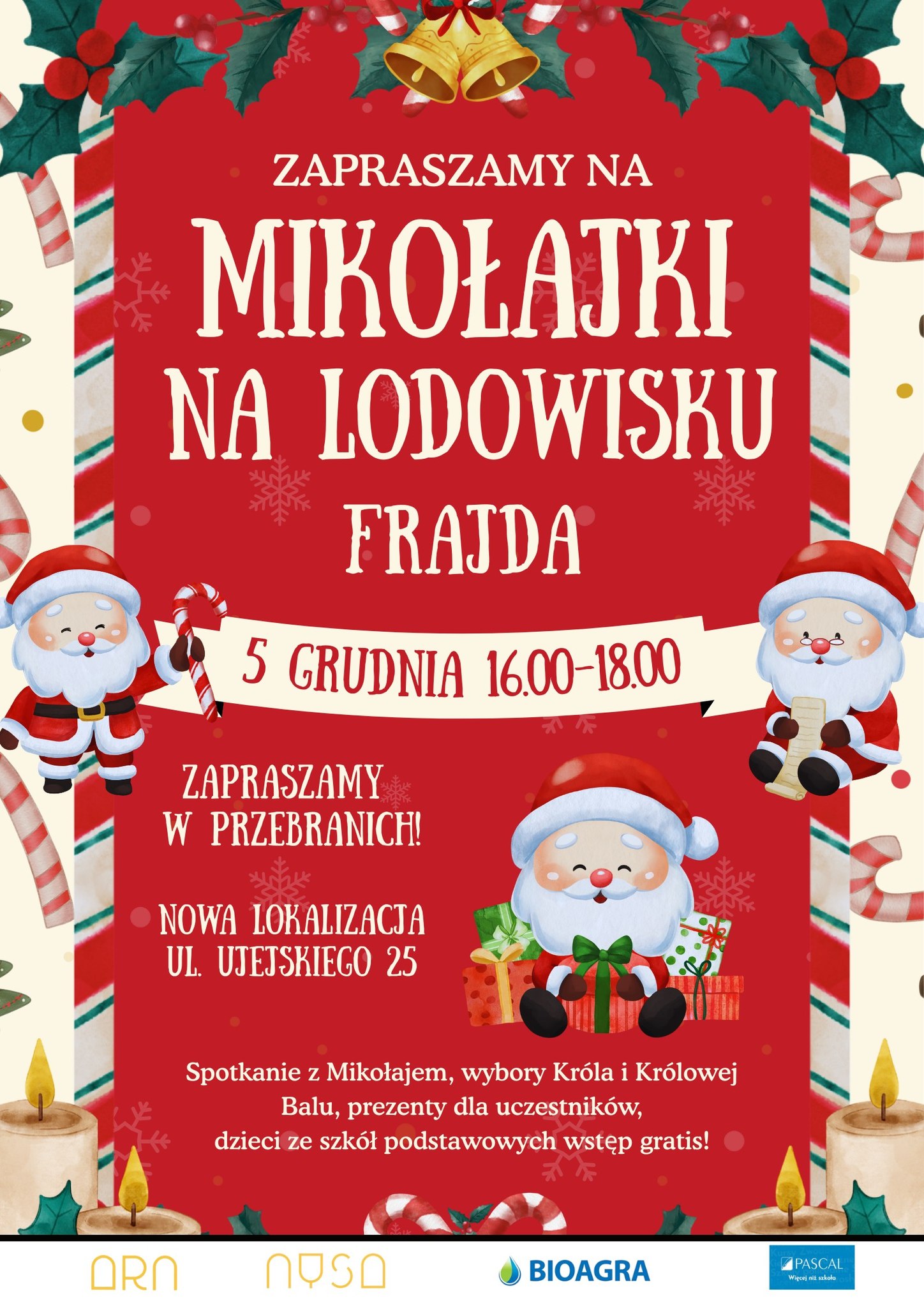 Jeśli w najbliższych dniach będziecie szukać Świętego Mikołaja, to mamy dla Was małą podpowiedź. Mamy potwierdzone informacje, że Mikołaj odwiedzi Lodowisko Miejskie na terenie Kąpieliska Frajda przy ulicy Ujejskiego.