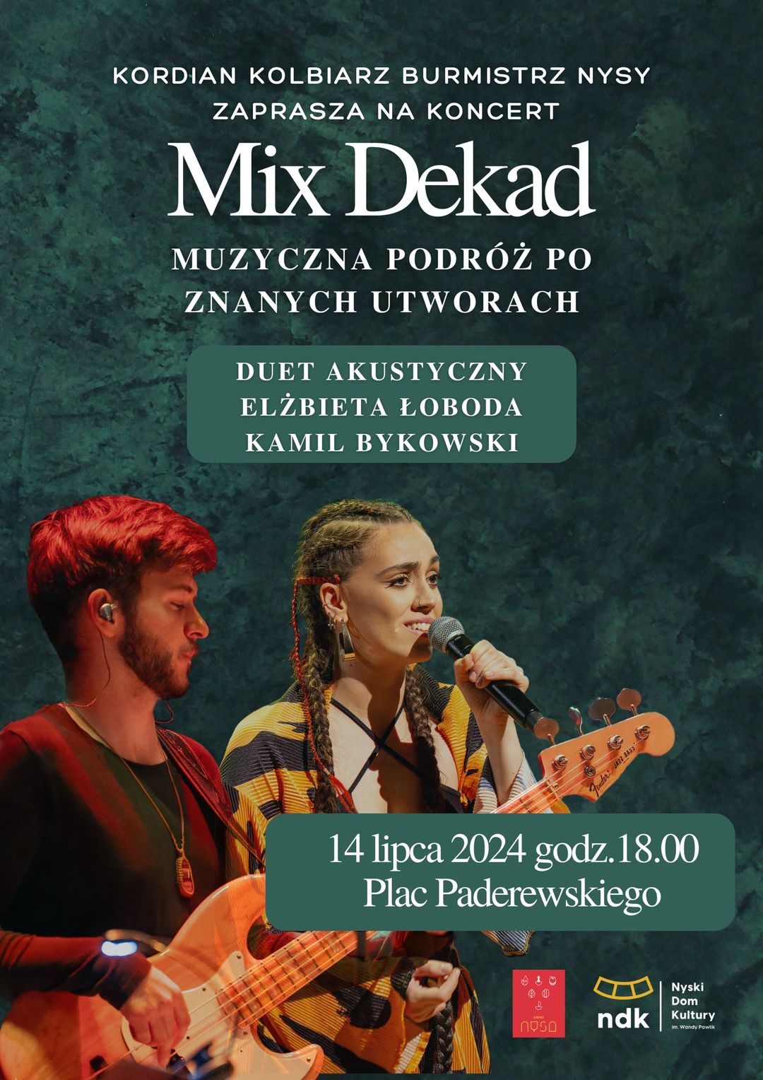 W niedziele 14 lipca na Placu Paderewskiego odbędzie się koncert „Mix Dekad. Muzyczna podróż po znanych utworach”. Podczas wydarzenia przed publicznością zaprezentuje się duet: Elżbieta Łoboda i Kamil Bykowski. Początek koncertu zaplanowano na godzinę 18:00.