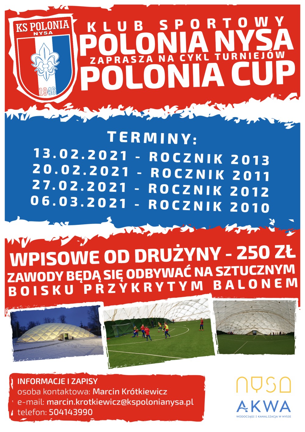 – Serdecznie zapraszamy na cykl turniejów młodzieżowych Polonia Cup, które zostaną rozegrane w najbliższym czasie na sztucznym boisku przykrytym balonem, które znajduje się na terenie kąpieliska Frajda w Nysie. Rywalizacja będzie toczyła się w kategoriach wiekowych od 2010 do 2013. – zachęca na swojej stronie internetowej Polonia Nysa.