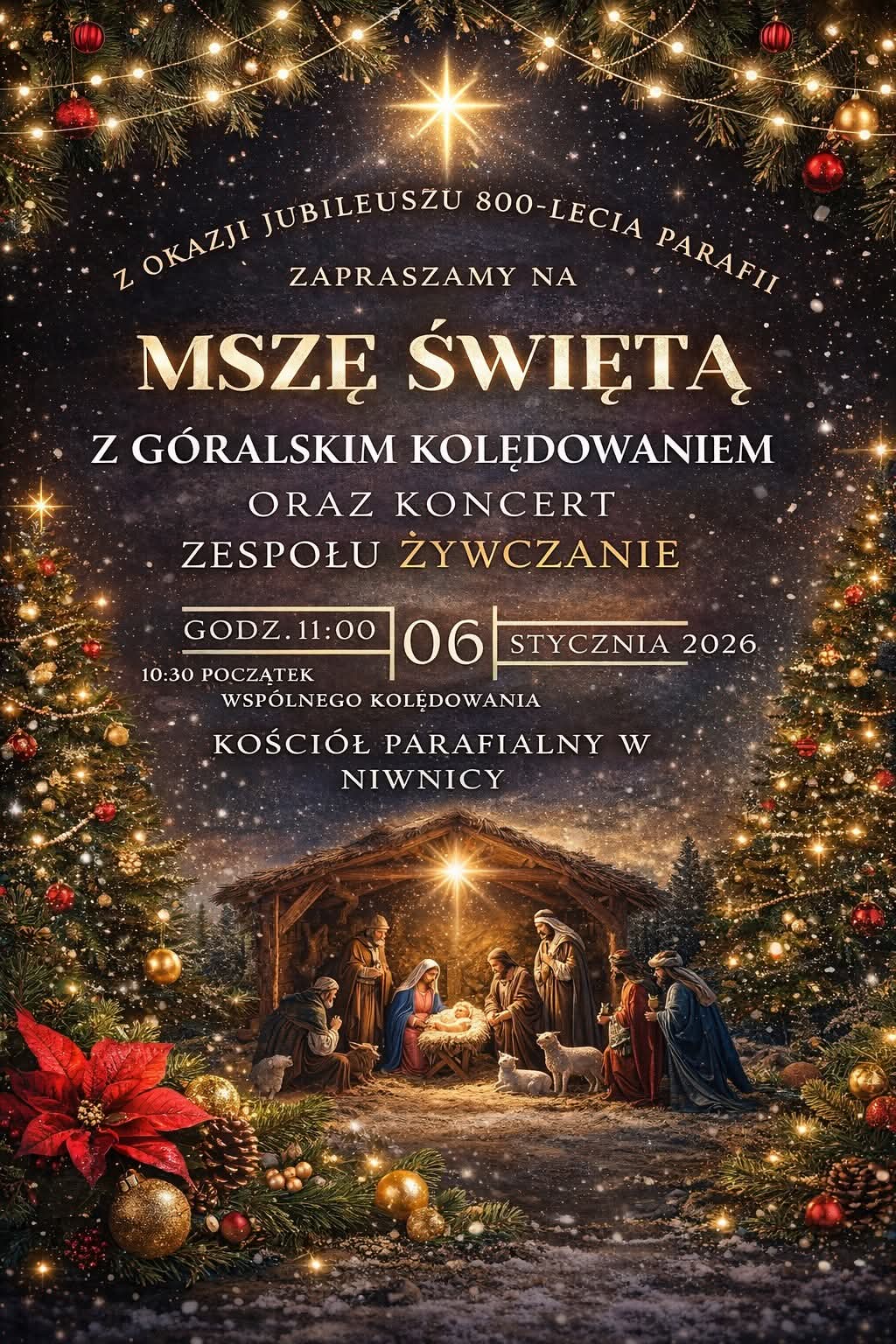 Z okazji jubileuszu 800-lecia Parafii w Niwnicy zorganizowane zostanie bardzo ciekawe wydarzenie, a mianowicie Msza Święta z góralskim kolędowaniem.