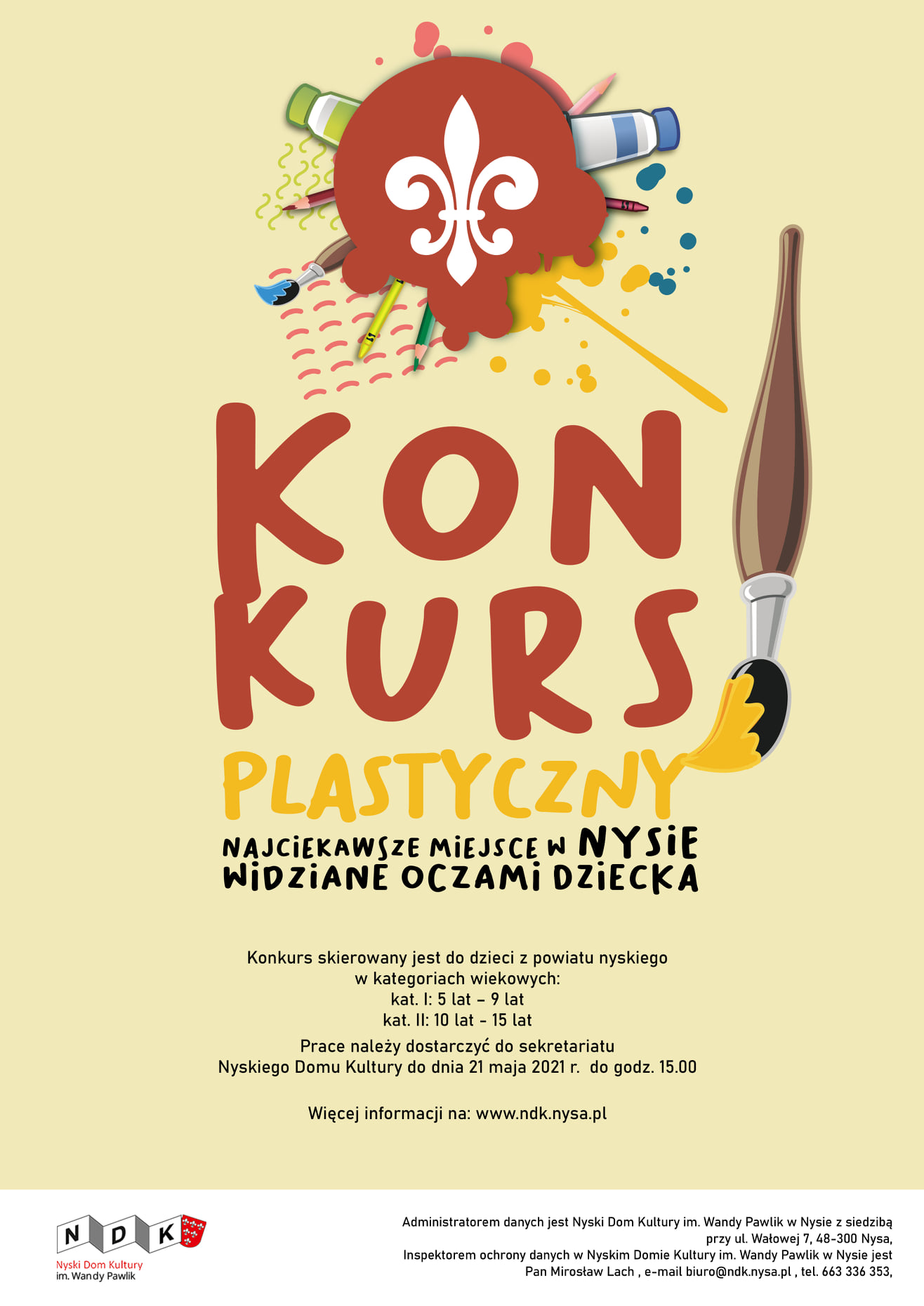 Prace należy dostarczyć do sekretariatu lub na portiernię Nyskiego Domu Kultury do dnia 21 maja 2021 do 15:00.