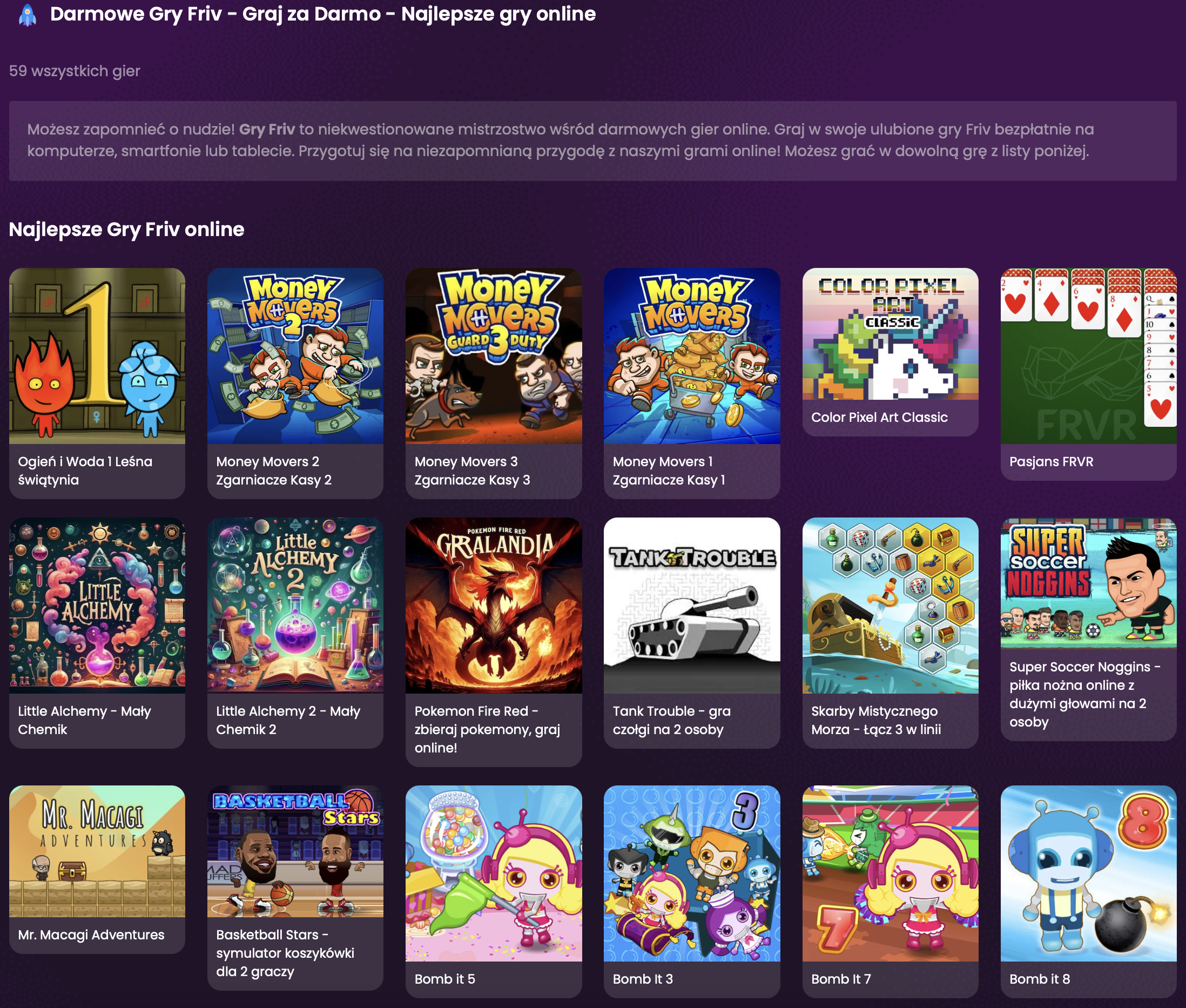 We wszystkie tytuły friv które prezentujemy poniżej zagrasz za darmo na stronie gralandia.pl