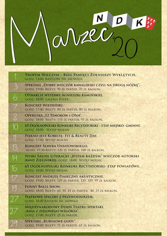 Co nas czeka w marcu w Nyskim Domu Kultury? Przed nami między innymi Bieg Pamięci Żołnierzy Wyklętych, Koncert Wiedeński czy Ogólnopolski Konkurs Recytatorski.