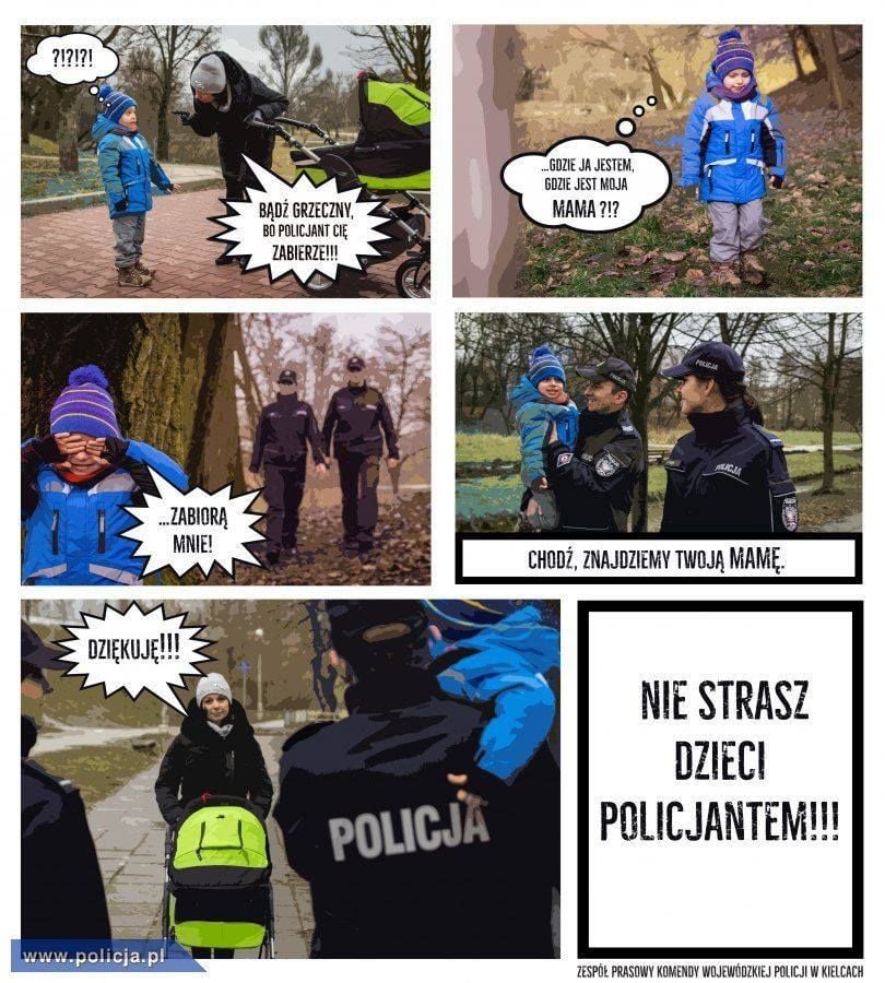 Często słyszymy, ”bądź grzeczny, bo zabierze Cię Pan policjant!”. Zdarza Ci się tak mówić? Zastanów się, czy w ten sposób właśnie nie przyczynisz się do nieszczęścia, gdy Twoje dziecko rzeczywiście będzie potrzebowało pomocy.