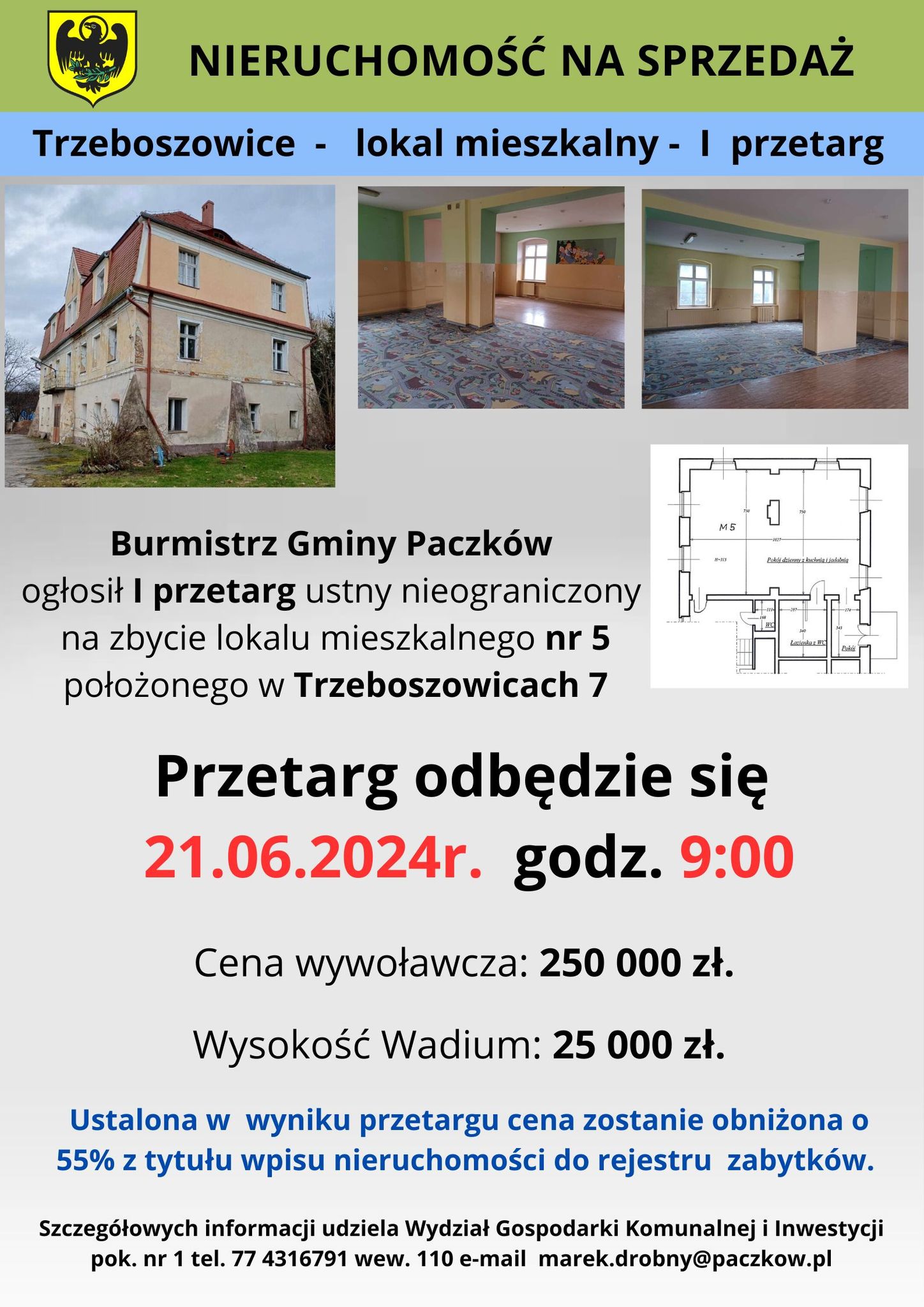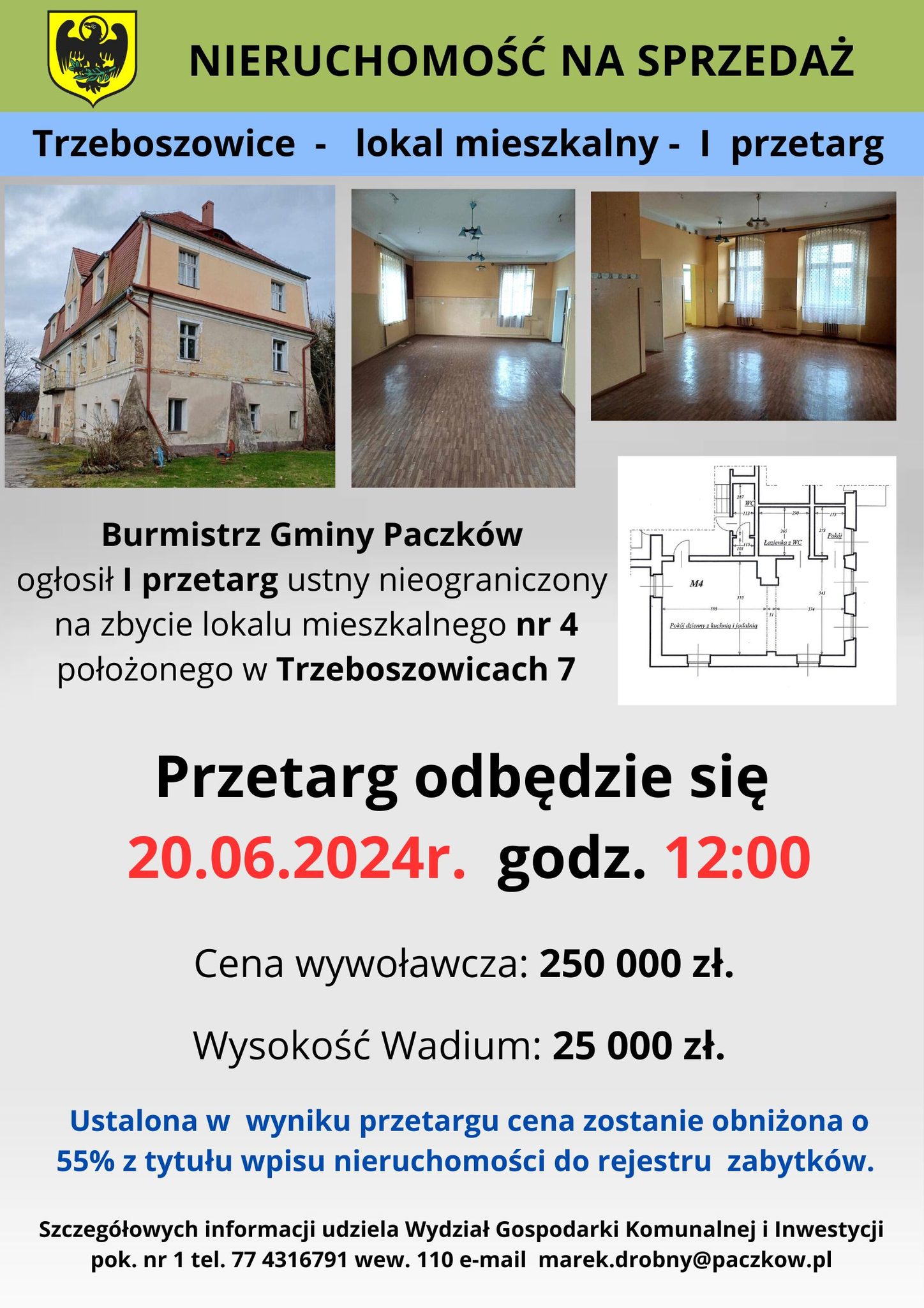 Gmina Paczków przygotowuje nieruchomości na sprzedaż. Na sprzedaż przeznaczono nieruchomości w Trzeboszowicach oraz Paczkowie.