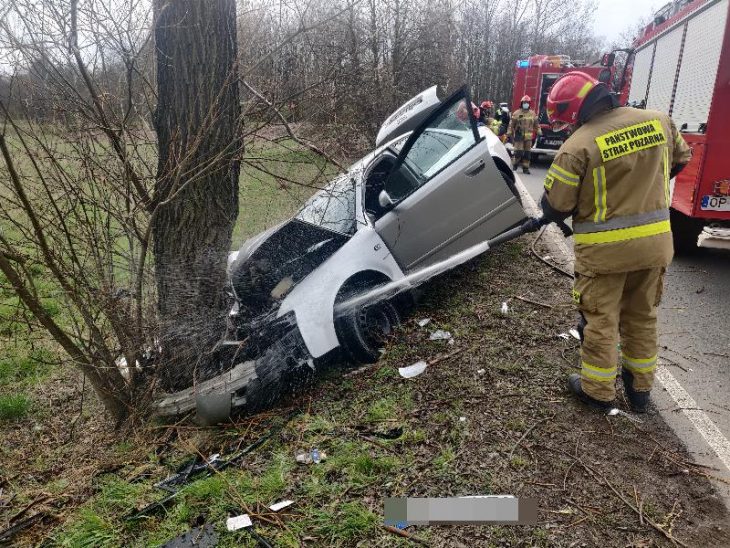Na miejscu rzeczywiście okazało się, że osobowe audi zjechało z drogi na pobocze, gdzie zderzyło się z drzewem. Ciężkich obrażeń doznała 59-letnia pasażerka. Niestety, w ich wyniku, w drodze do szpitala, zmarła. Kierowcą był 41-letni mężczyzna. Jak pokazało badanie policyjnym alkomatem, był on kompletnie pijany. W swoim organizmie miał blisko 4 promile alkoholu.
