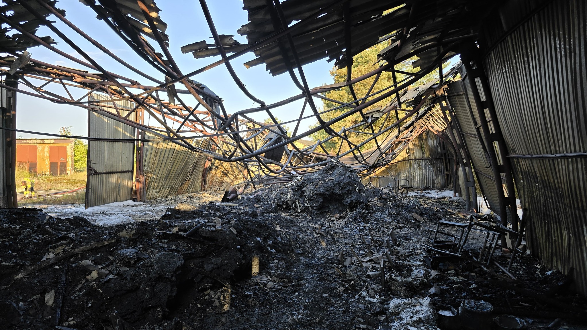Na miejscu pożaru nadal prowadzone są działania polegające na wyciąganiu nadpalonych pozostałości znajdujących się w hali na zewnątrz a następnie ich dogaszaniu.