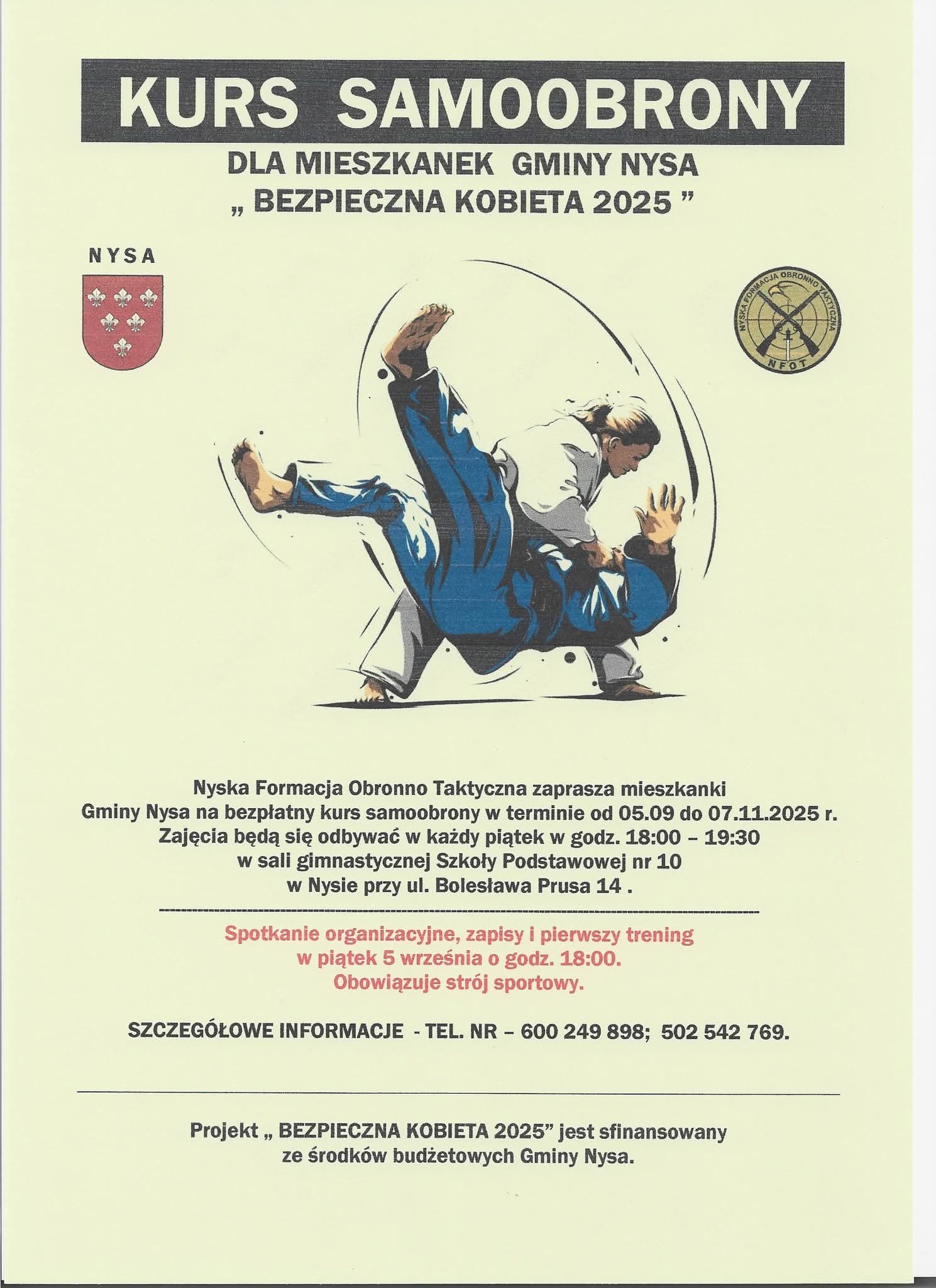 Ważna informacja dla Pań z Gminy Nysa. Nyska Formacja Obronno-Taktyczna przygotowuje kolejny kurs samoobrony.