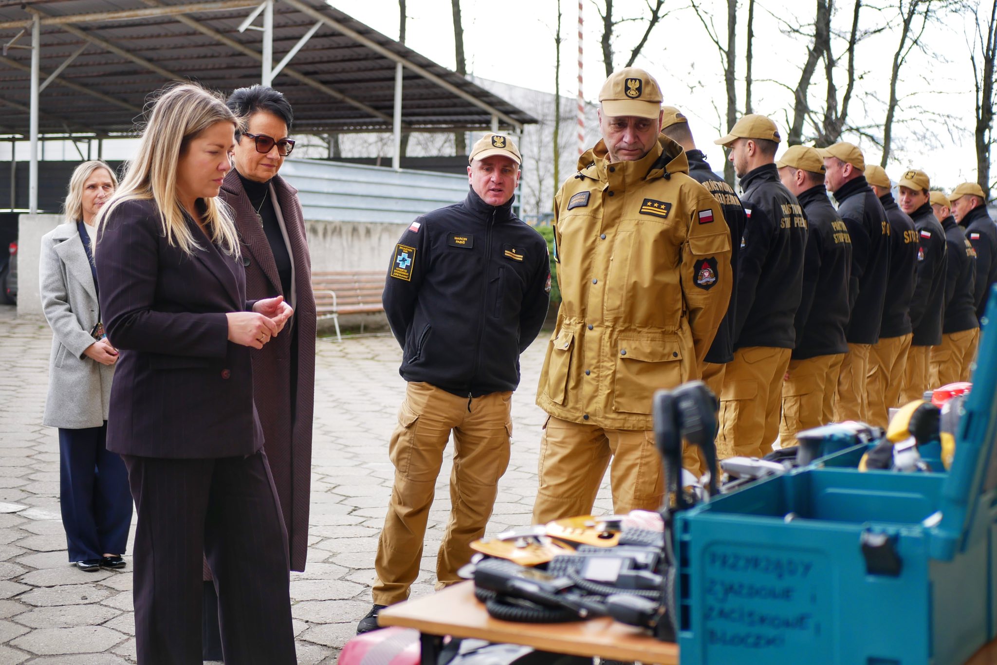 Delegacja odwiedziła również Jednostkę Ratowniczo-Gaśniczą w Głuchołazach, która została wyposażona m.in. w specjalistyczny samochód z podnośnikiem hydraulicznym wart blisko 2,9 mln zł, nowy mikrobus oraz sprzęt do działań ratowniczych. Modernizacja objęła także zaplecze techniczne, co podniosło gotowość operacyjną strażaków.