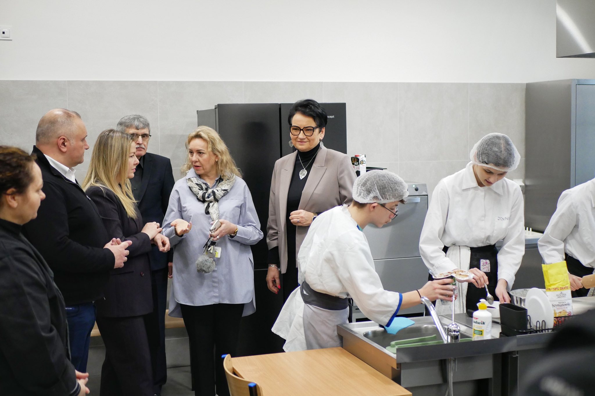 Podczas wizyty przedstawiono efekty inwestycji w Zespole Szkół Technicznych i w I Liceum Ogólnokształcącym Carolinum w Nysie. W ZST uczniowie mogą już korzystać z kompleksowo odnowionej sali gimnastycznej, która ucierpiała podczas ubiegłorocznej powodzi. W Carolinum wykonano niezbędne remonty po zalaniu piwnic i świetlicy, a także zaprezentowano odświeżone pomieszczenia, w tym strzelnicę.