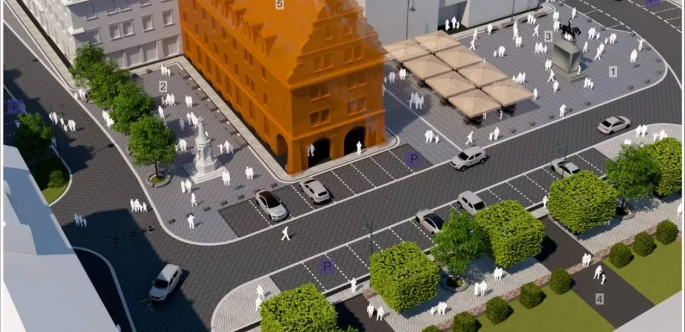 Udostępnij!Burmistrz Nysy Kordian Kolbiarz zaprezentował nowe wizualizacje dotyczące nyskiego Rynku. W tym roku ma się rozpocząć generalna przebudowa nyskiego śródmieścia włączenie z Rynkiem. Kolorem pomarańczowym zaznaczono planowaną zabudowę – skrzydło ratusza i łącznik za Domem Wagi Miejskiej. Jak widać starano się pogodzić interesy wszystkich – zarówno zmotoryzowanych, właścicieli punktów handlowo-usługowych jak i zdeklarowanych pieszych, którzy domagali się całkowitego wyłączenia Rynku z ruchu. Między bazyliką, a ulicą Bracką zaplanowano teren pieszy (z możliwością przejazdu) na którym zostawiać się będą stragany weekendowe (np z rękodziełem czy produktami lokalnymi). Przed Dom Wagi powróci fontanna, która znajdowała się tam do 1945 roku – tym … Czytaj dalej Nowe wizualizacje Rynku